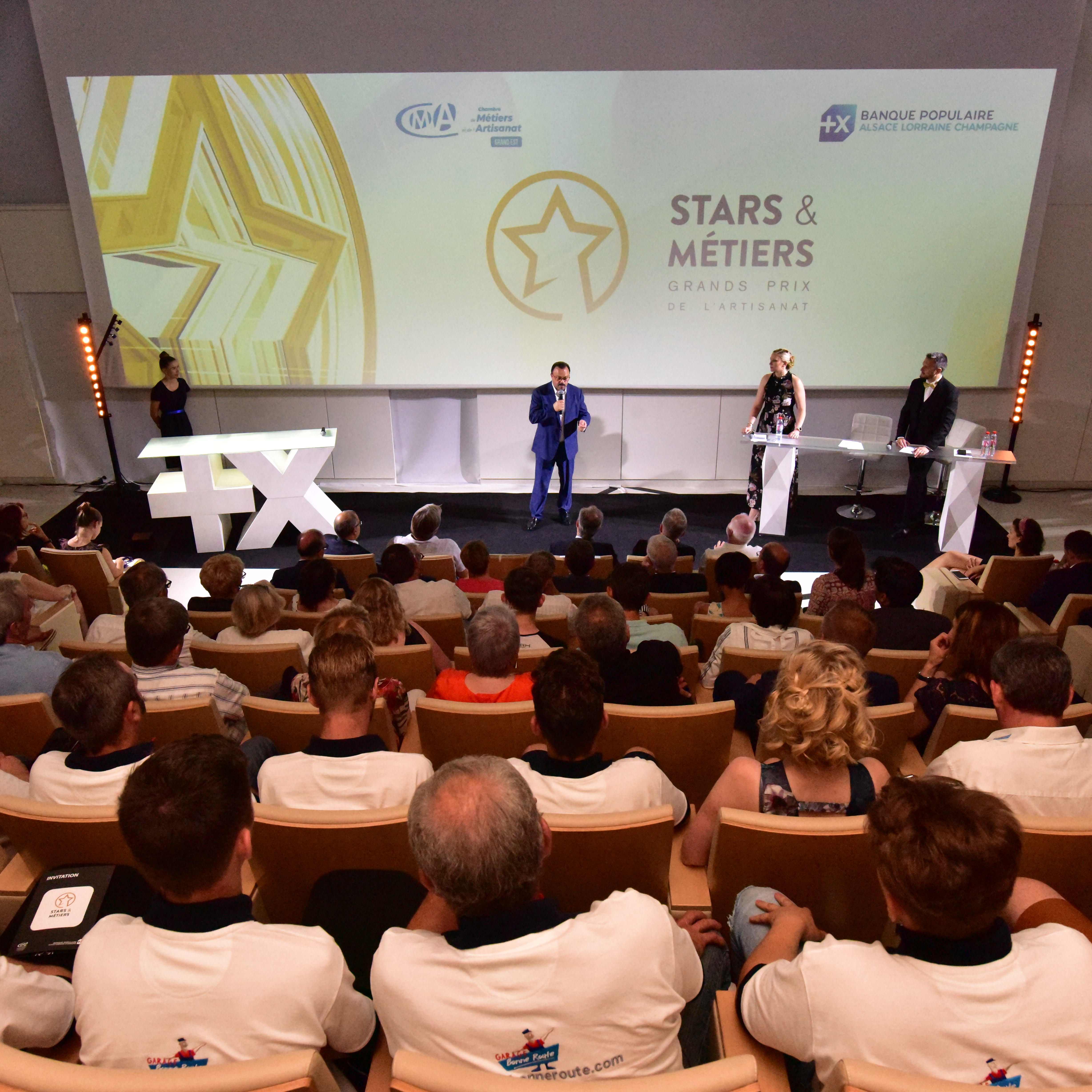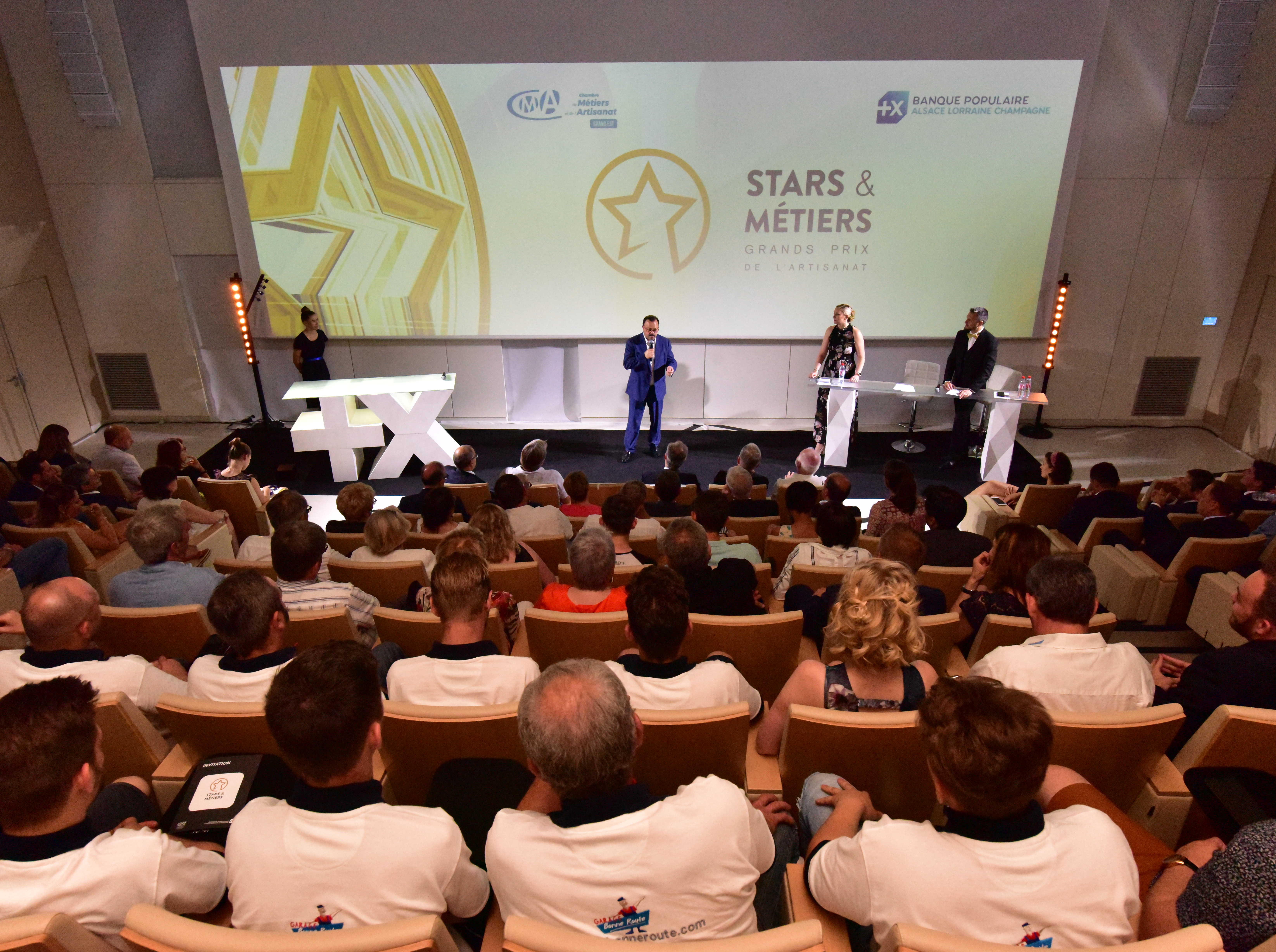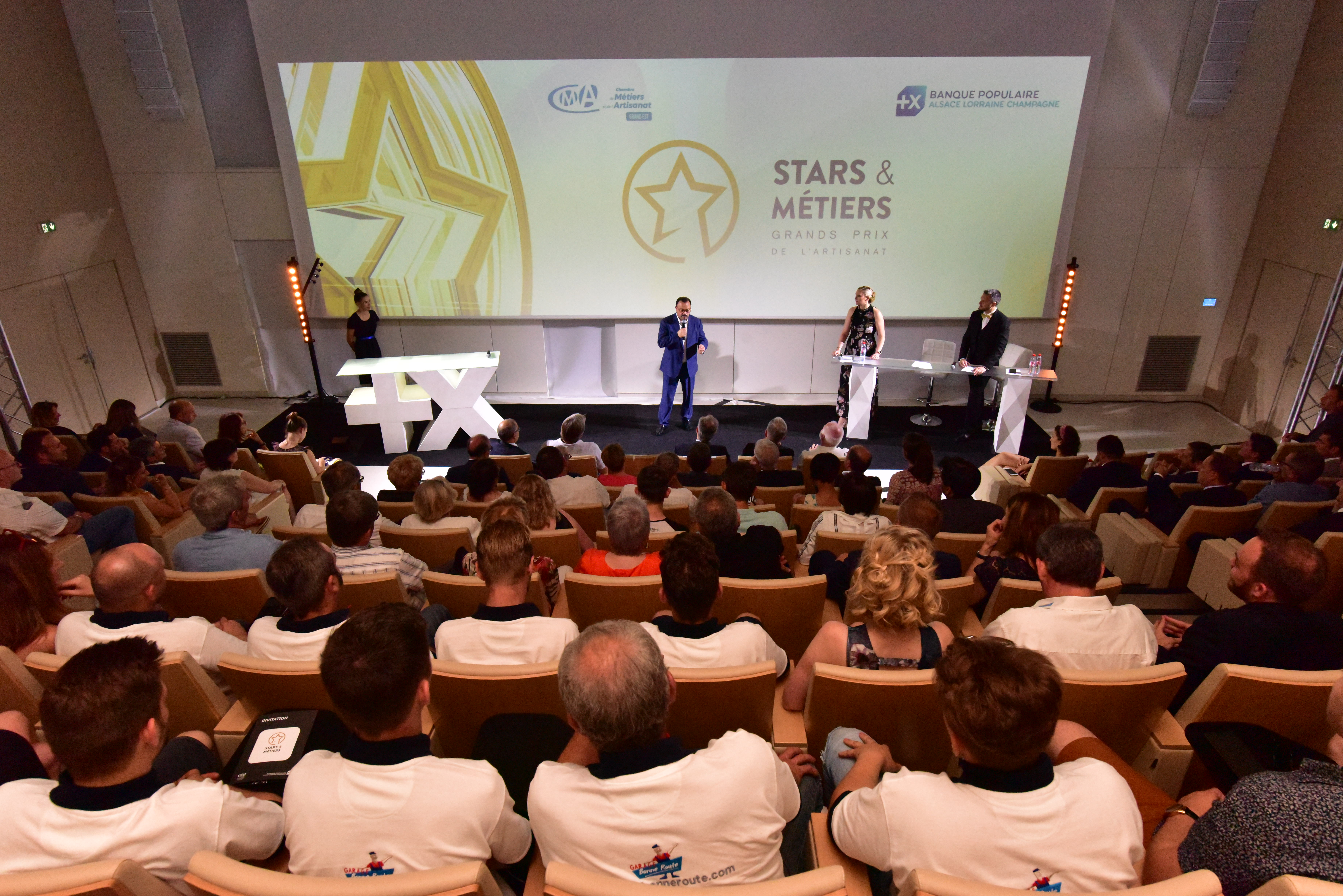 Cérémonie STARS & METIERS 2019 avec toute l'équipe du Garage Bonne Route (de dos au premier plan) - Lauréat du Grand Est et 3ème au concours national de l'Artisan de l'année