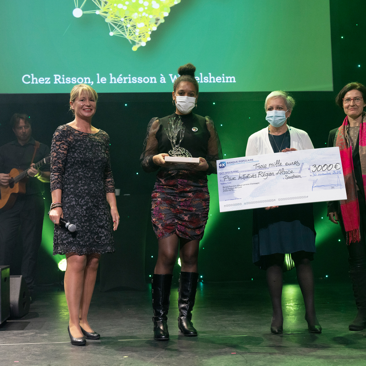 De gauche à droite : Nadine Gradoux, responsable Communication Institutionnelle de la BPALC, Pauline et Régine Ruffenach, Chez Risson, le Hérisson et Eliane Ginglinger, Administratrice de la BPALC