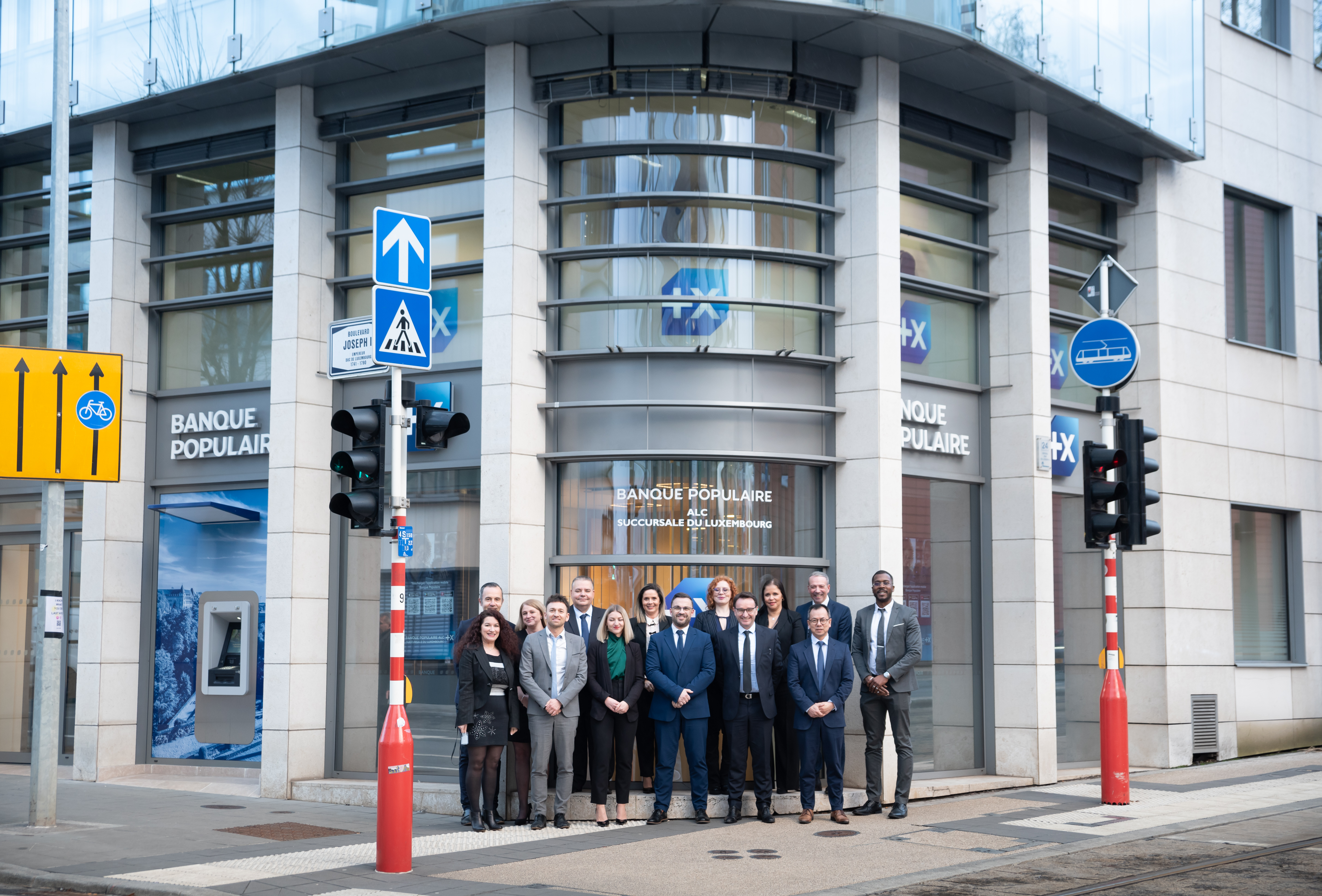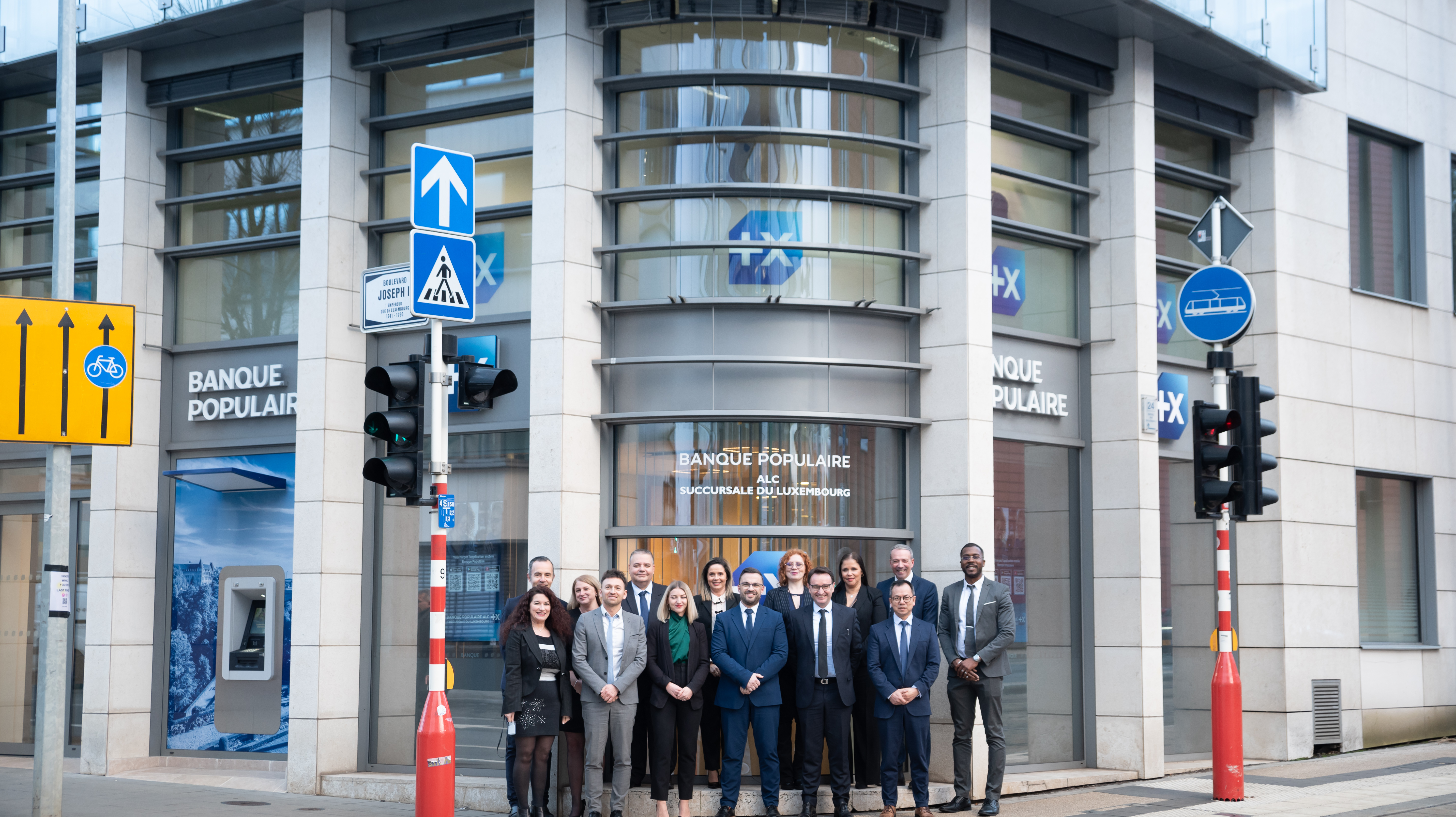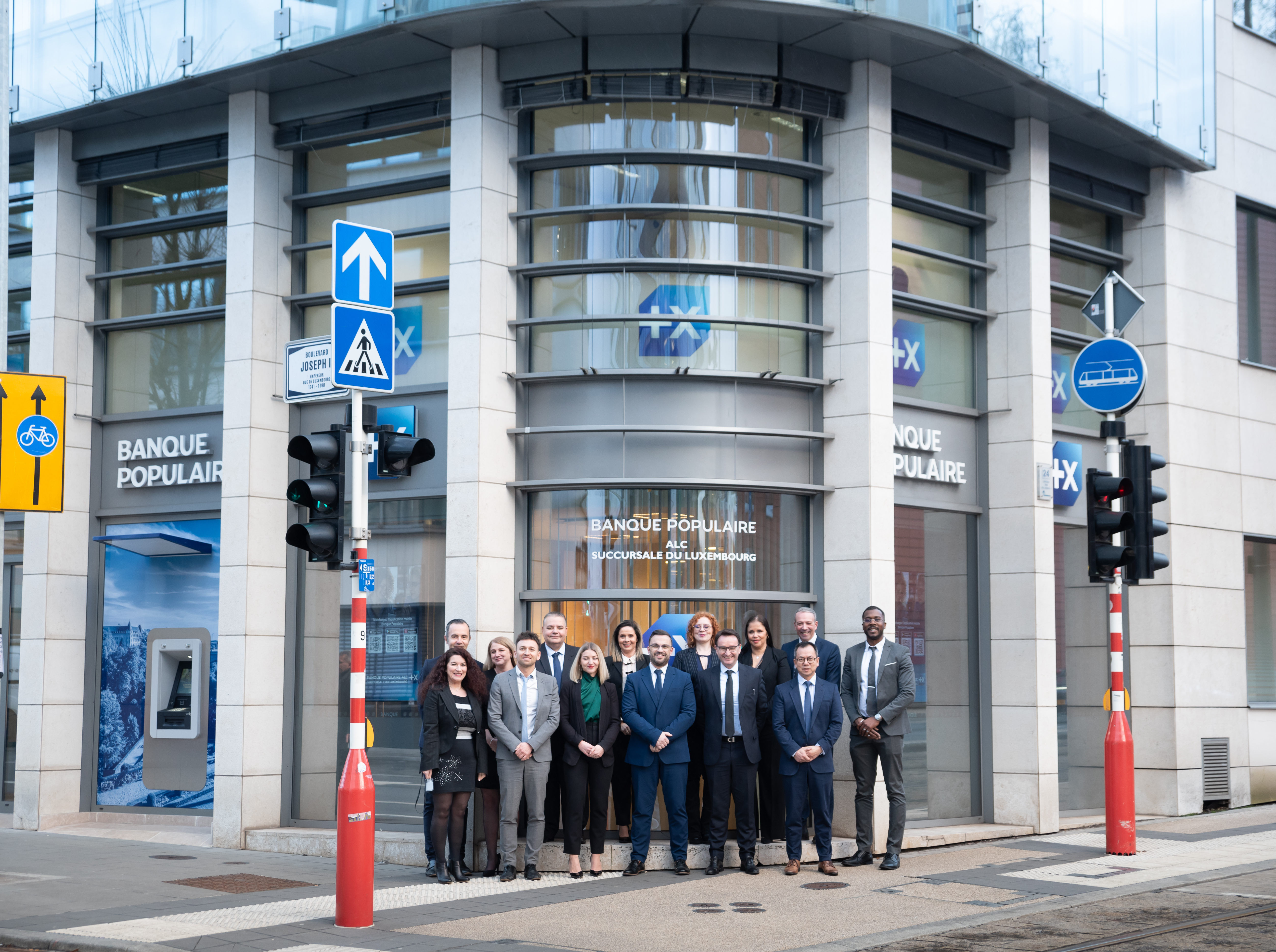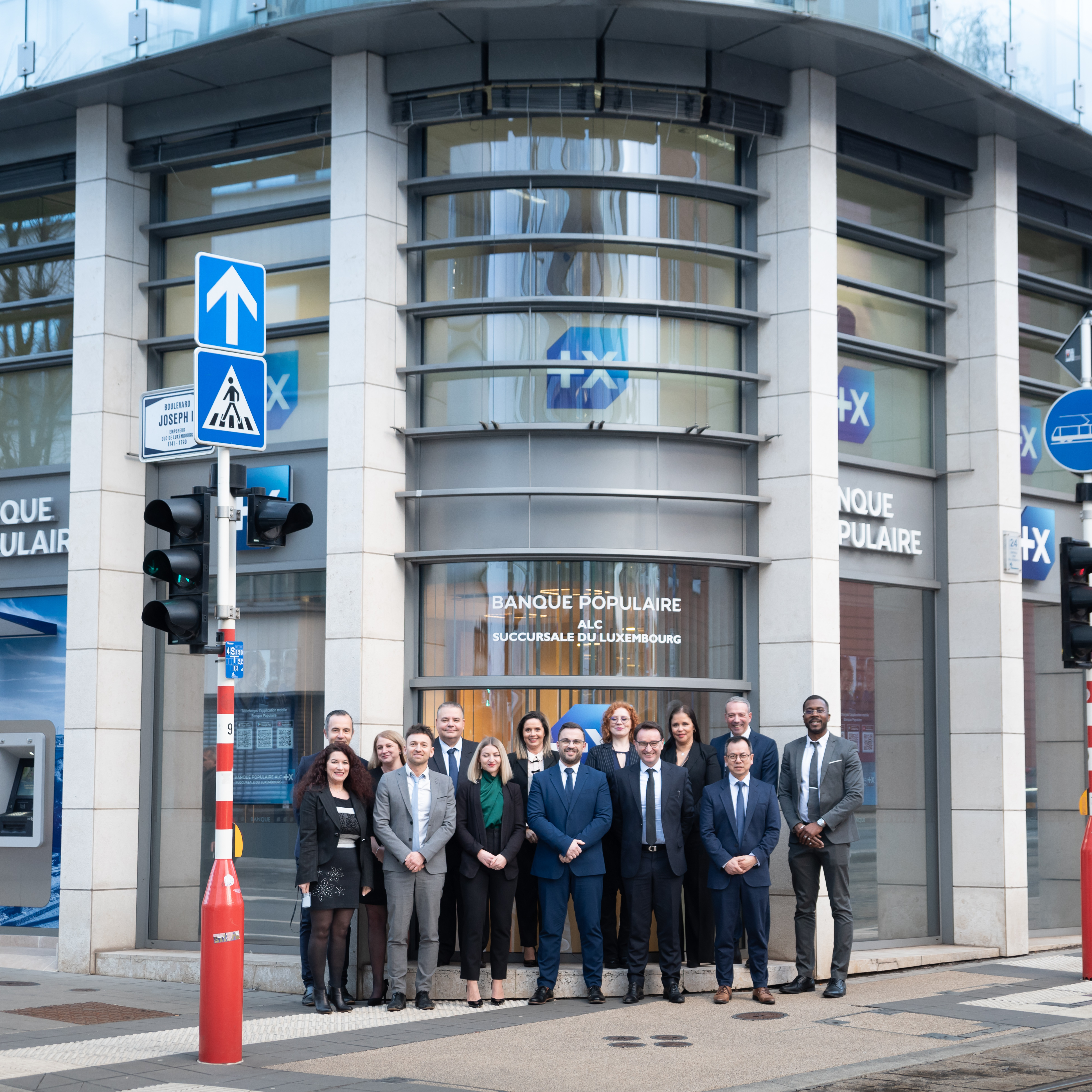 [Photo] Toutes les équipes BPALC au service des Particuliers, Professionnels et Entreprises devant la façade de la nouvelle agence "Luxembourg Etoile"