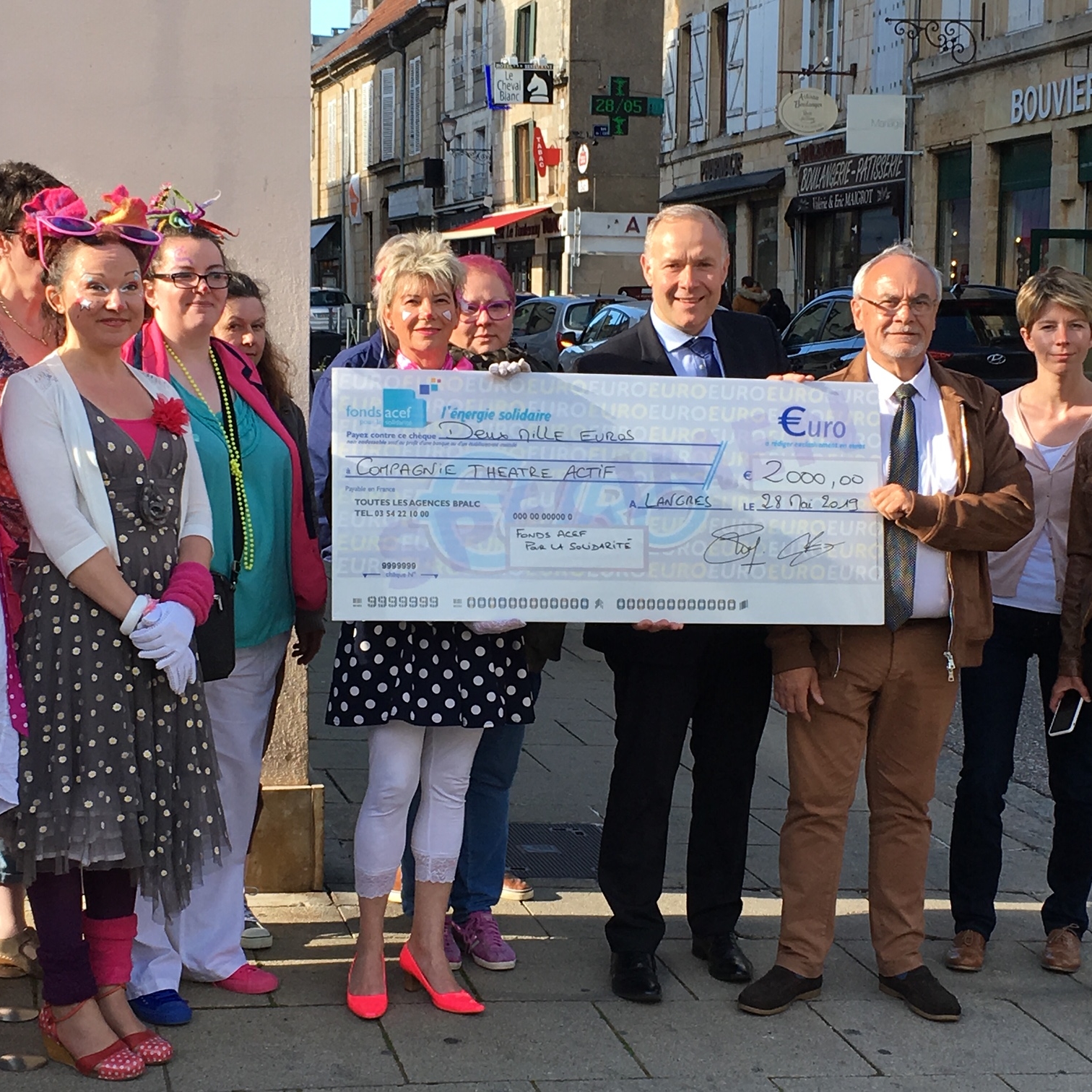 Chèque du "Fonds ACEF pour la Solidarité" remis à la Compagnie Théâtre Actif de Villegusien