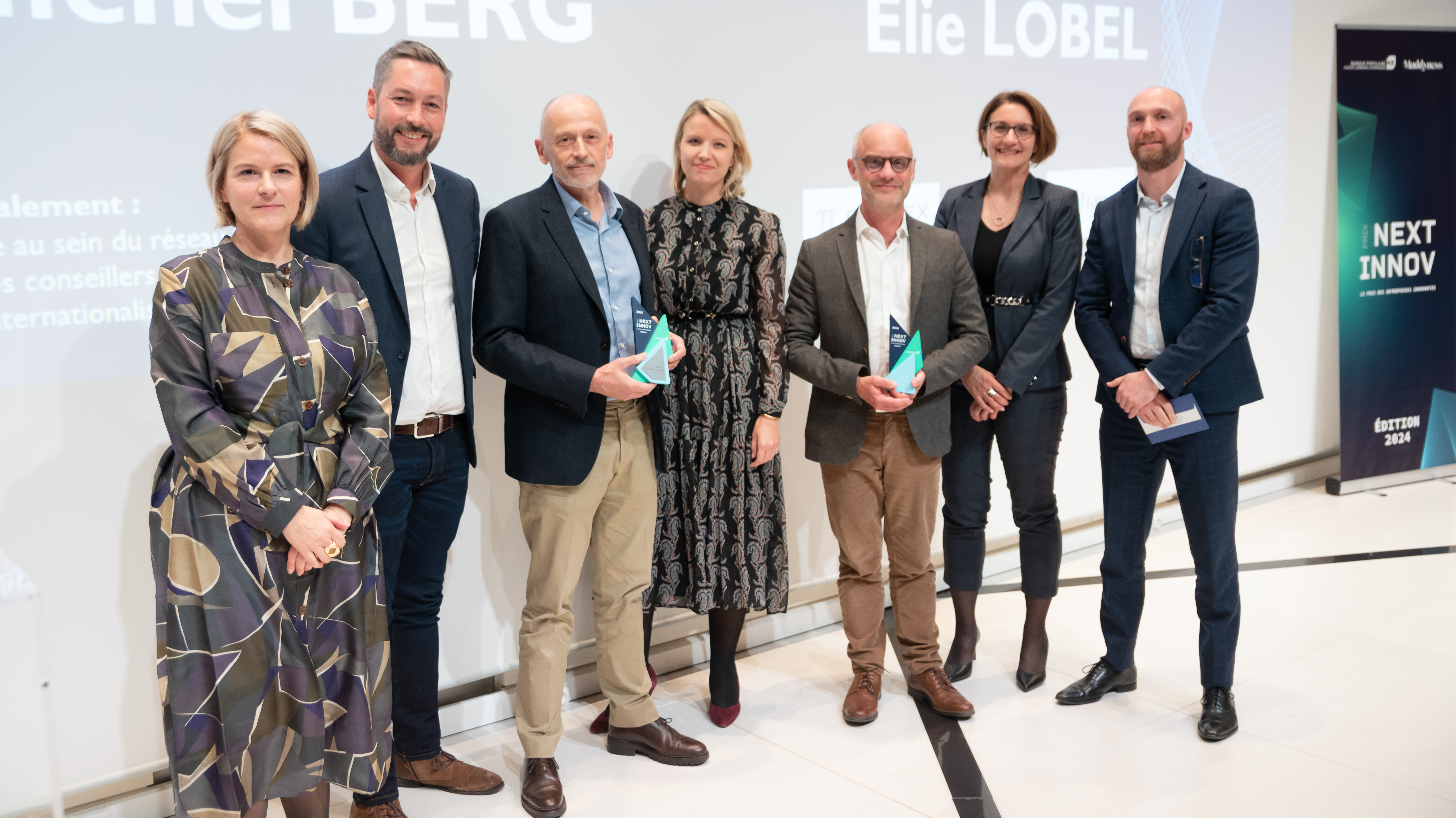 De gauche à droite : Mireille WETZ, Chargée de Mission Innovation & Transition Energétique de la BPALC, Maxime AUBRY, Délégué Innovation BPI France, Michel BERG, Président et Directeur général AXILUM ROBOTICS, Marie HAZEMAN, Directrice Adjointe du Territoire Strasbourg Eurométropole de la BPALC, Elie LOBEL, CEO de RDS, Muriel MUNINGER, Directrice Adjointe du Territoire Alsace Nord de la BPALC et Julien RICOURT, Délégué Régional PRAMEX INTERNATIONAL