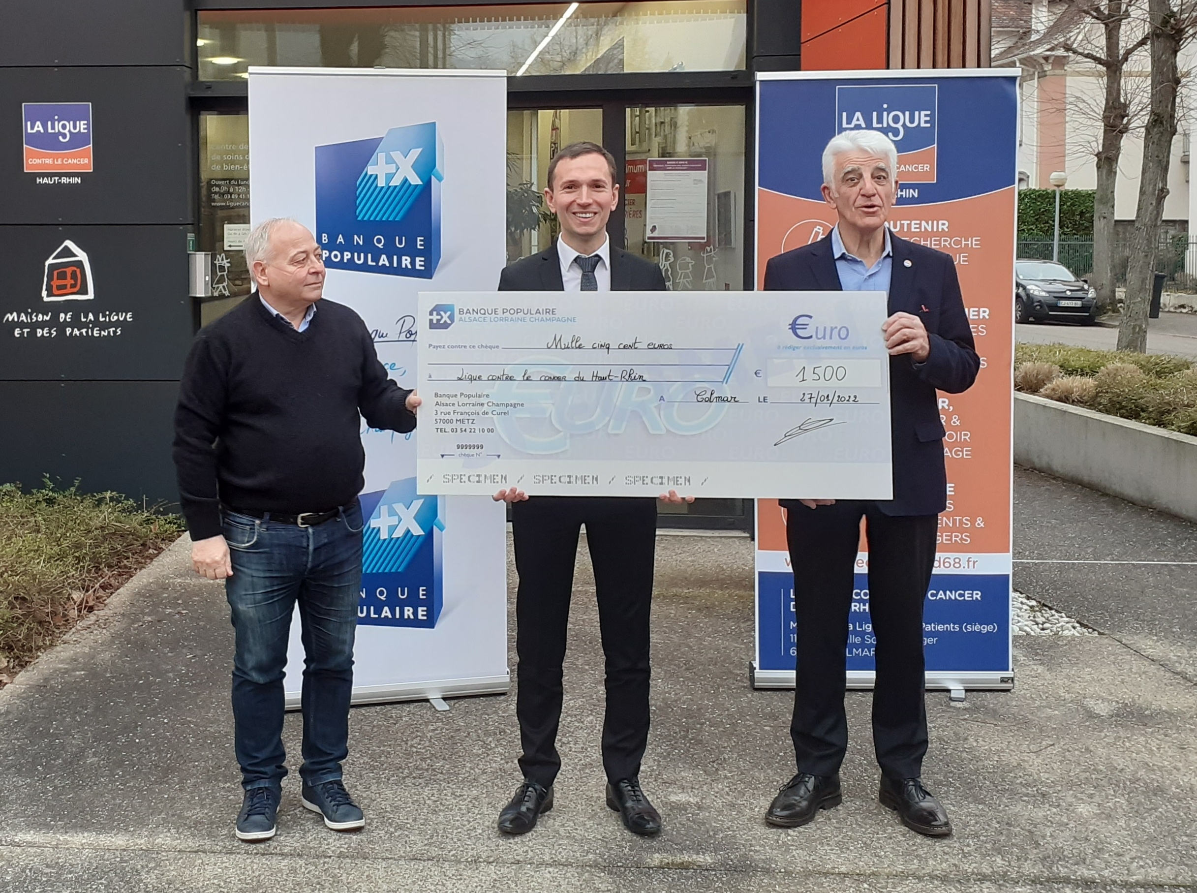 La BPALC remet un chèque de 1500 euros à La Ligue contre le cancer du Haut-Rhin.