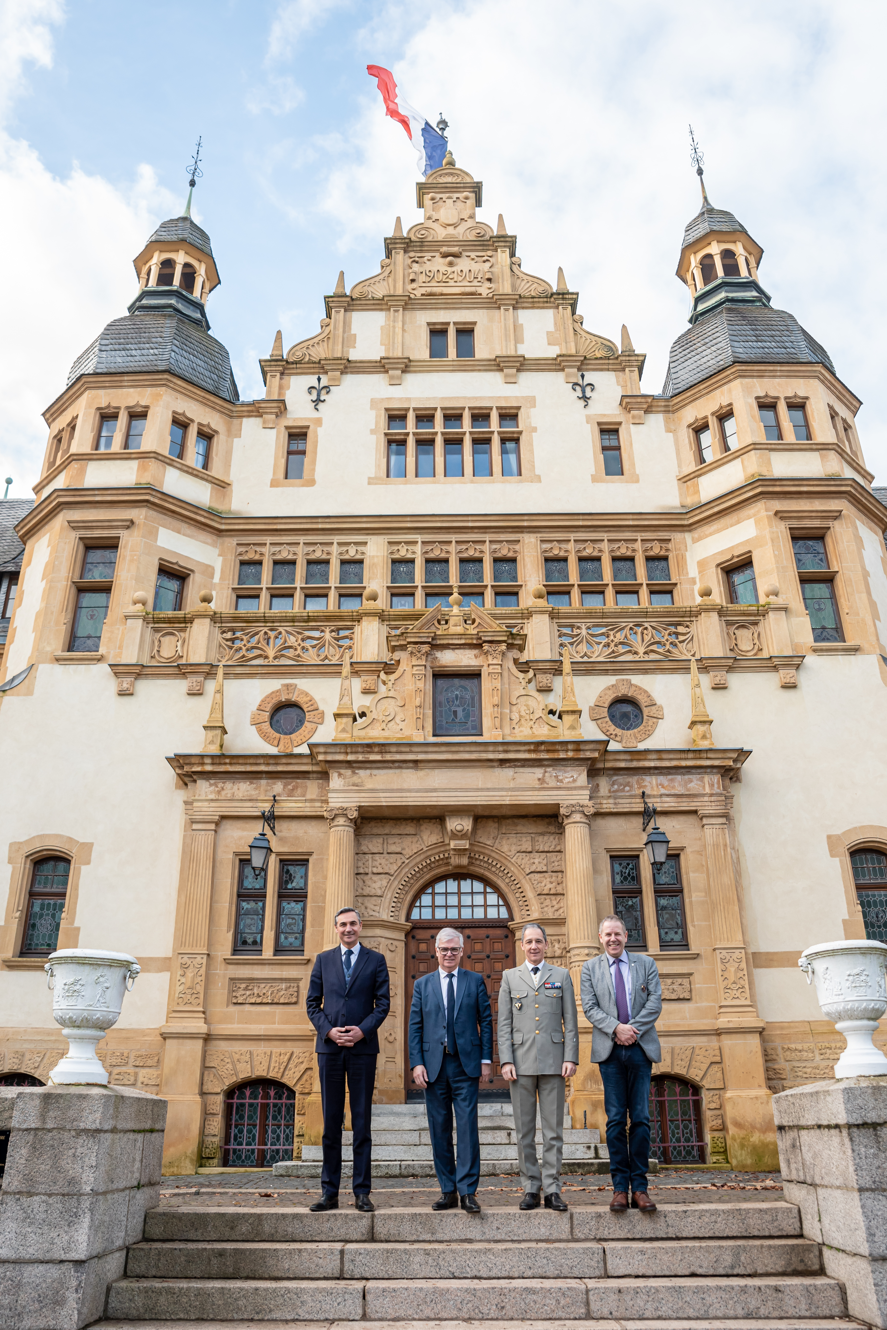 De gauche à droite : Hubert De Marcellus, directeur général adjoint - Pôle Ressources Humaines & Transformation de la BPALC, Dominique Garnier, directeur général de la BPALC, Général de corps d’armée Alexandre d’Andoque de Sériège, officier général de zone de défense et de sécurité Est et Colonel (RC) Didier Scherrer, CRED / CGNE coordonnateur Zone Est.