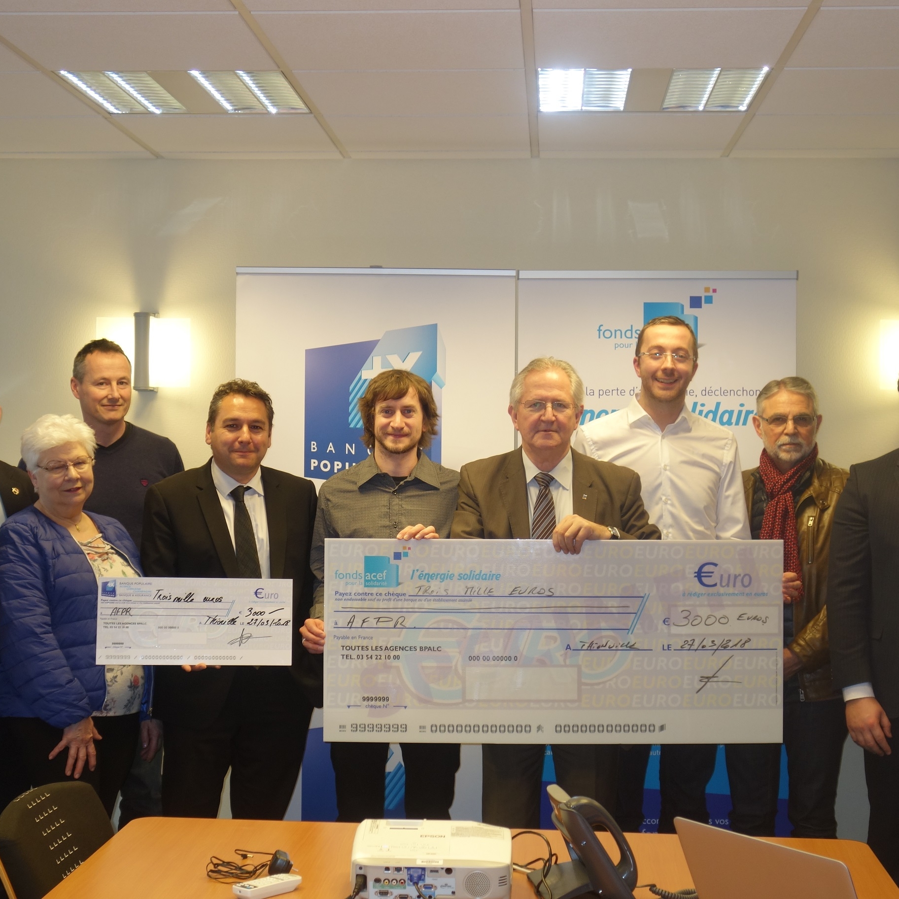 Remise de 2 chèques de 3000 € du Fonds ACEF pour la Solidarité et de la Banque Populaire Alsace Lorraine Champagne à l'Association des Premiers Répondants