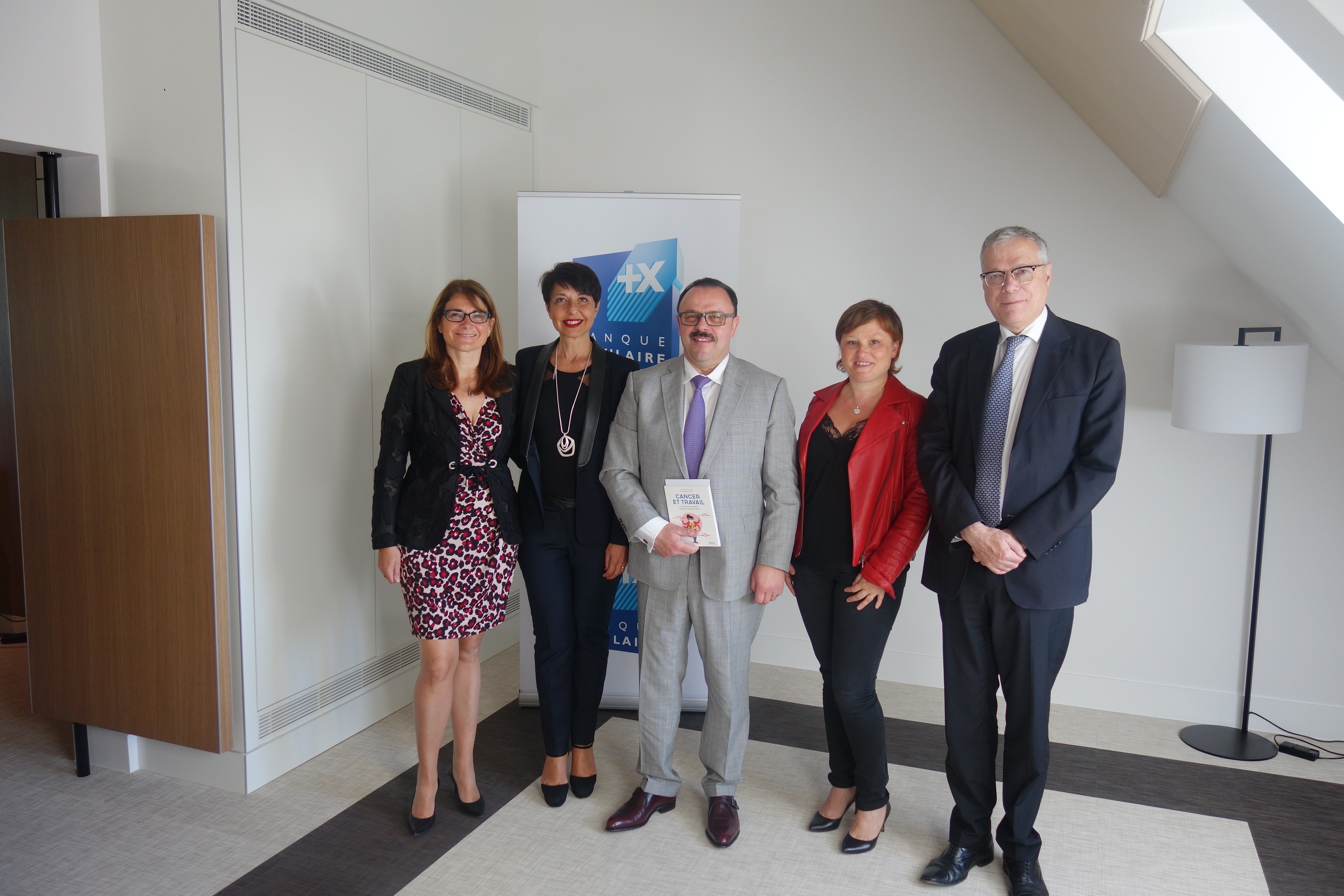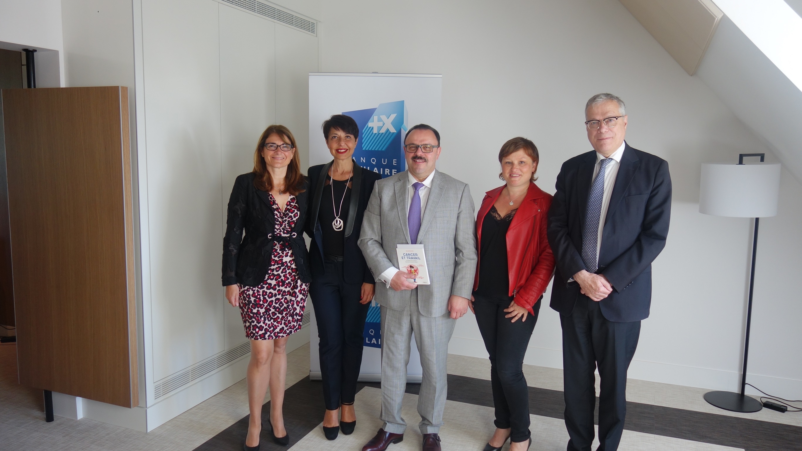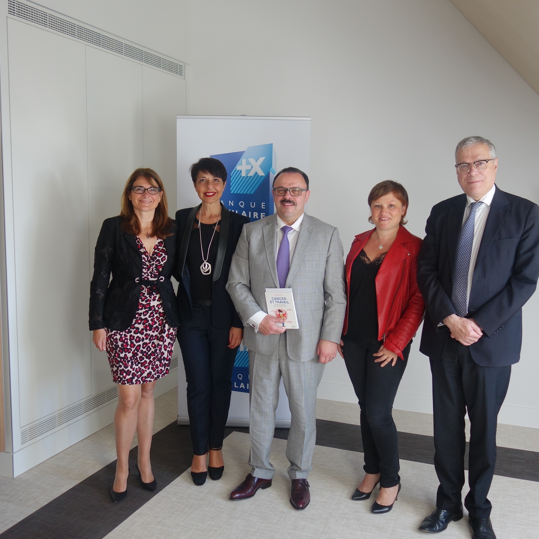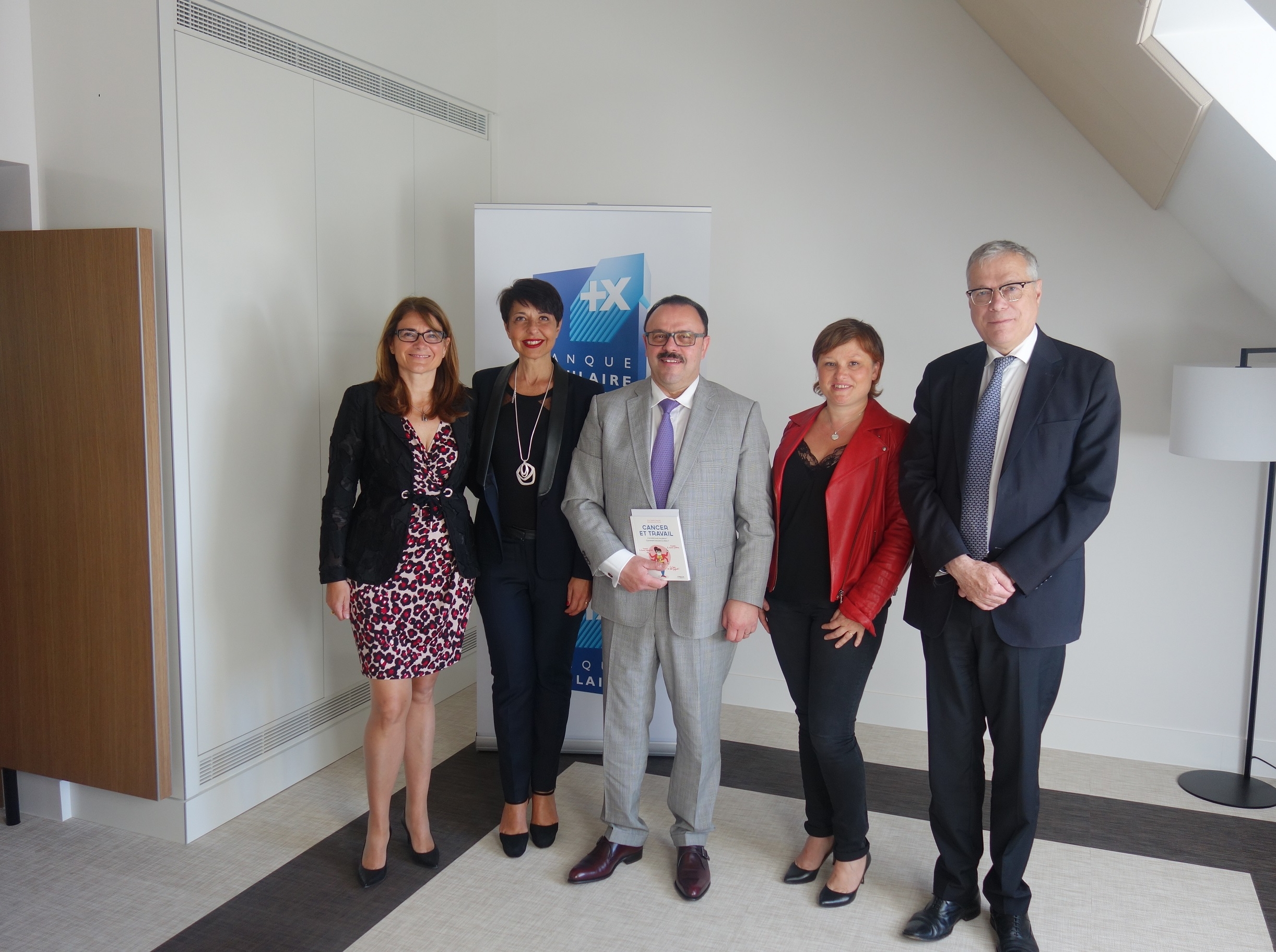 Sabine Calba, Secrétaire Général de la BPALC / Christine Fabresse, Présidente du Directoire de la Caisse d’Epargne Languedoc Roussillon / Dominique Wein, Directeur Général de la BPALC / Anne-Sophie TUSZYNSKI, Fondatrice de Cancer@Work / Pascal Sornette, Directeur des Ressources Humaines de la BPALC