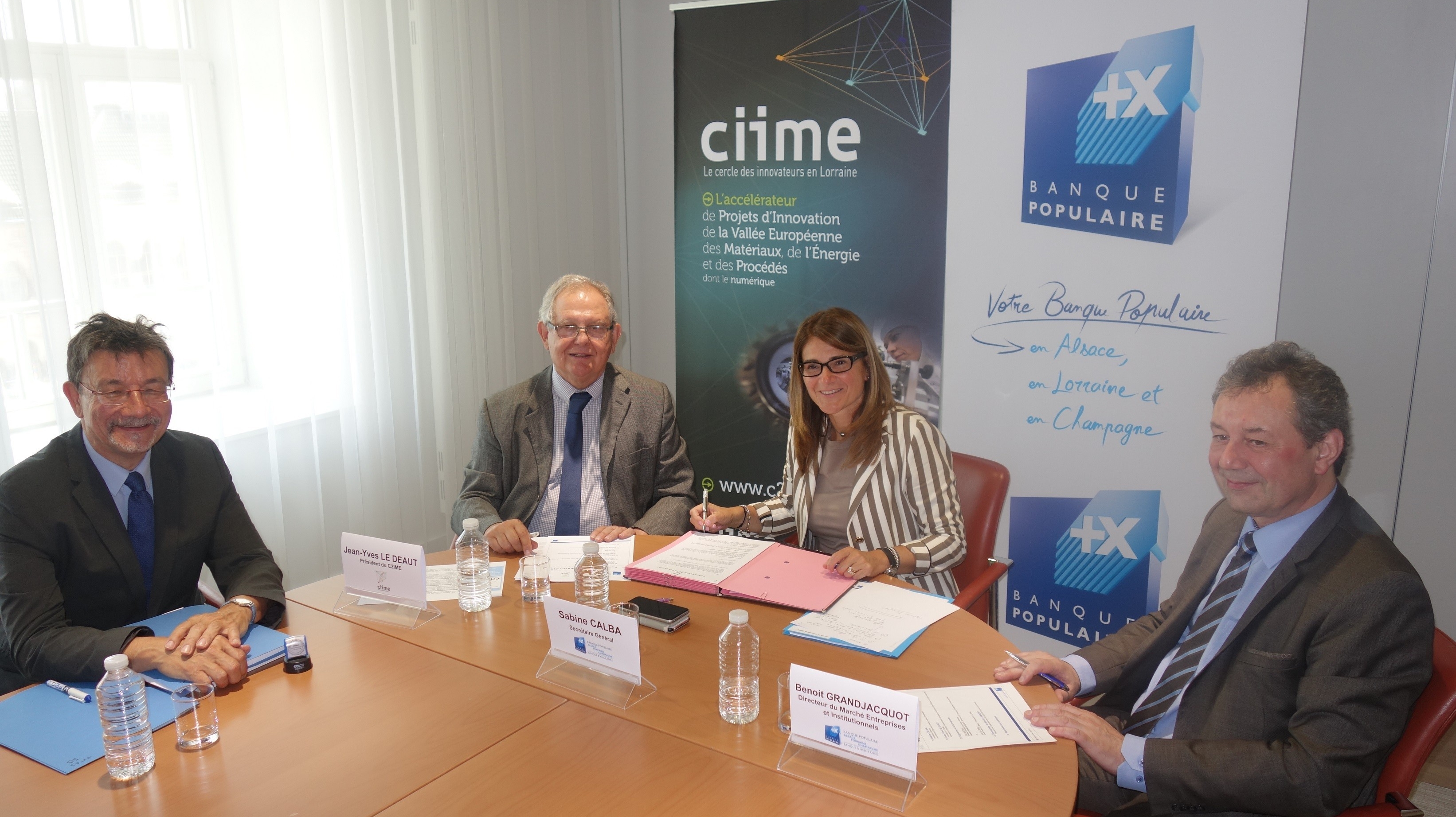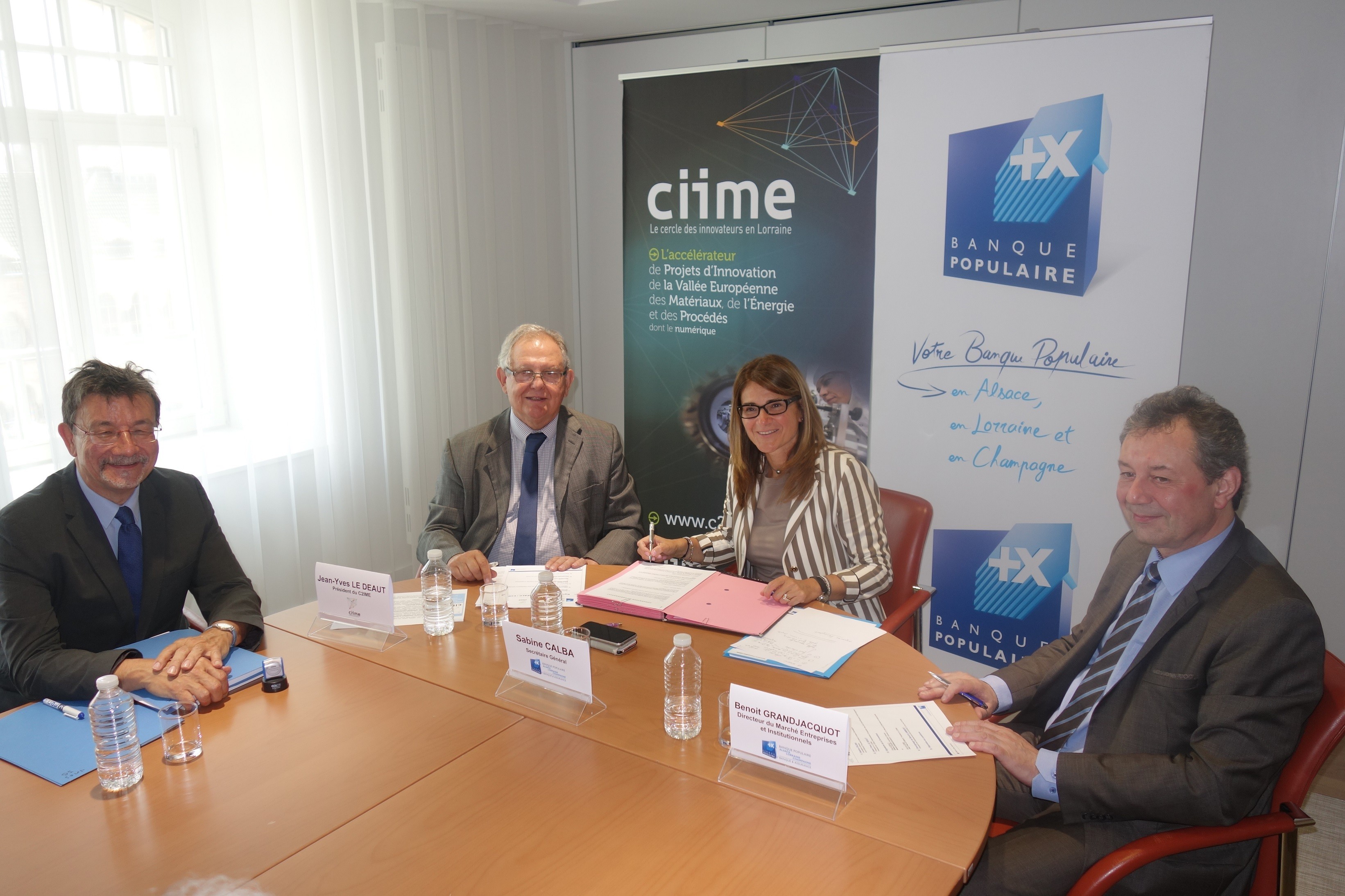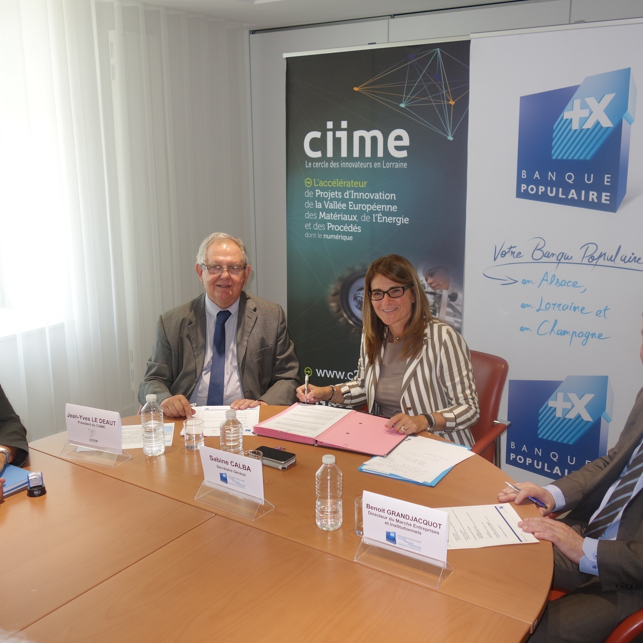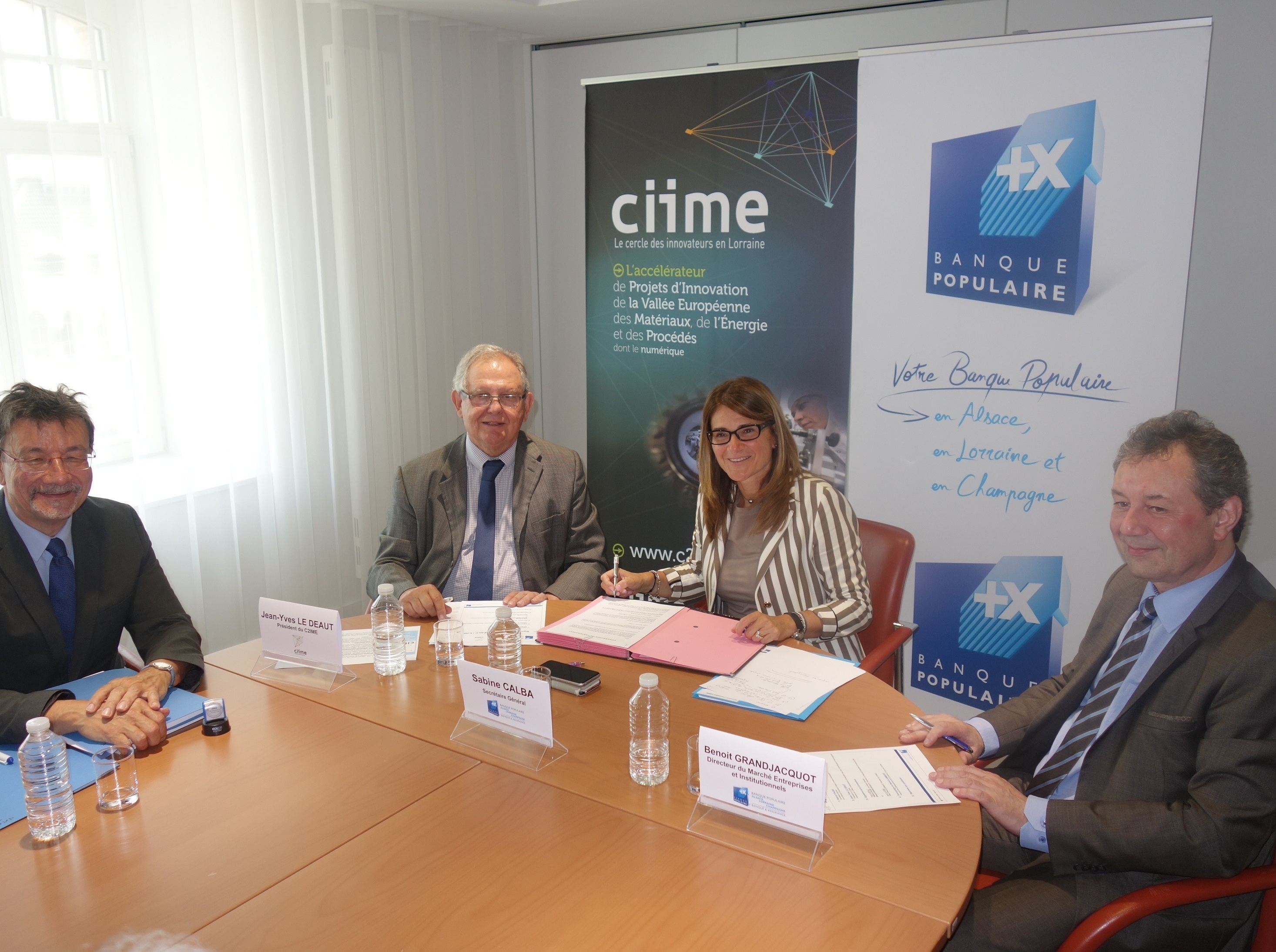 1ère signature en France d'une convention entre un accélérateur d’entreprises industrielles : le C2IME et une banque : la Banque Populaire Alsace Lorraine Champagne