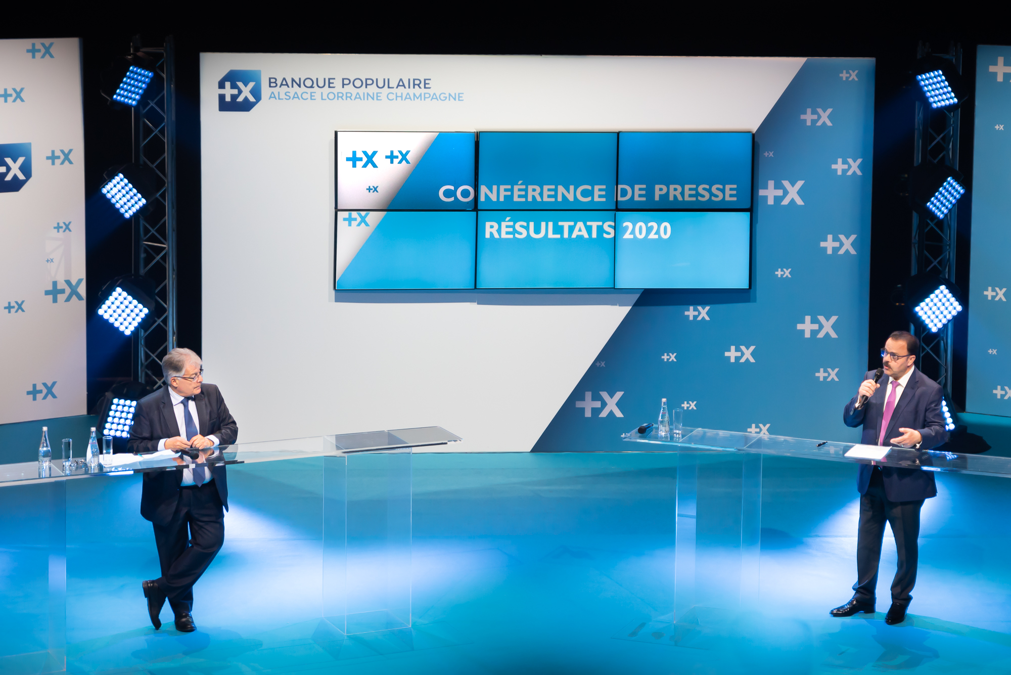 Thierry Cahn, Président du Conseil d'Administration et Dominique Wein, Directeur général de la BPALC lors de la présentation des résultats 2020.