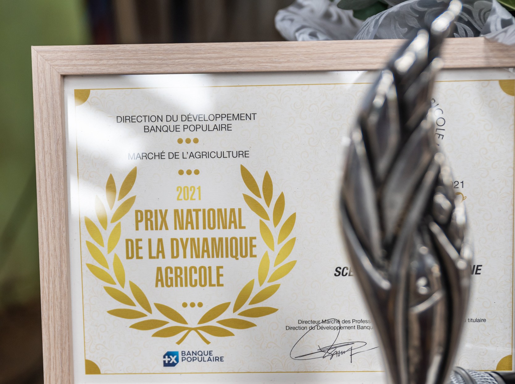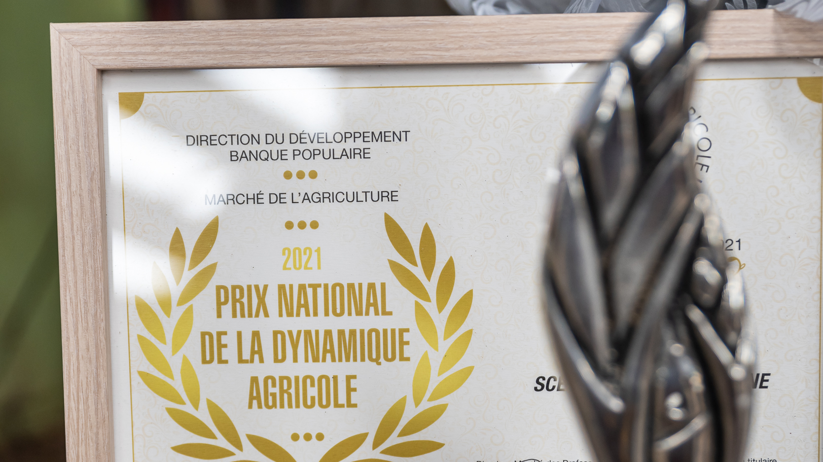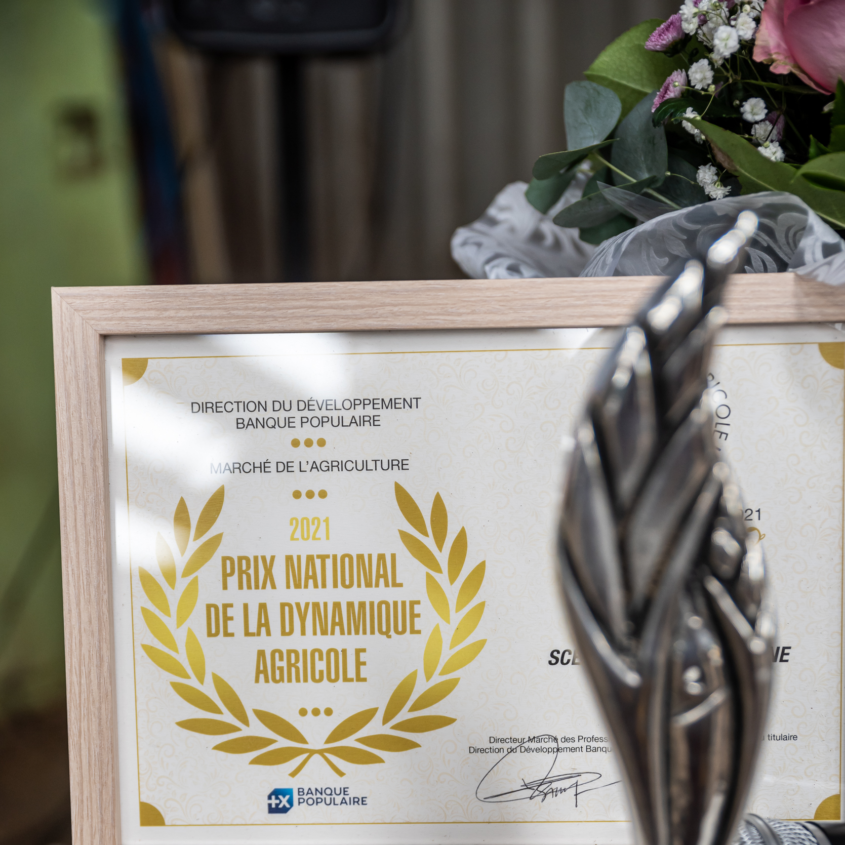 Trophée et diplôme du PRIX NATIONAL DE LA DYNAMIQUE AGRICOLE de la Banque Populaire