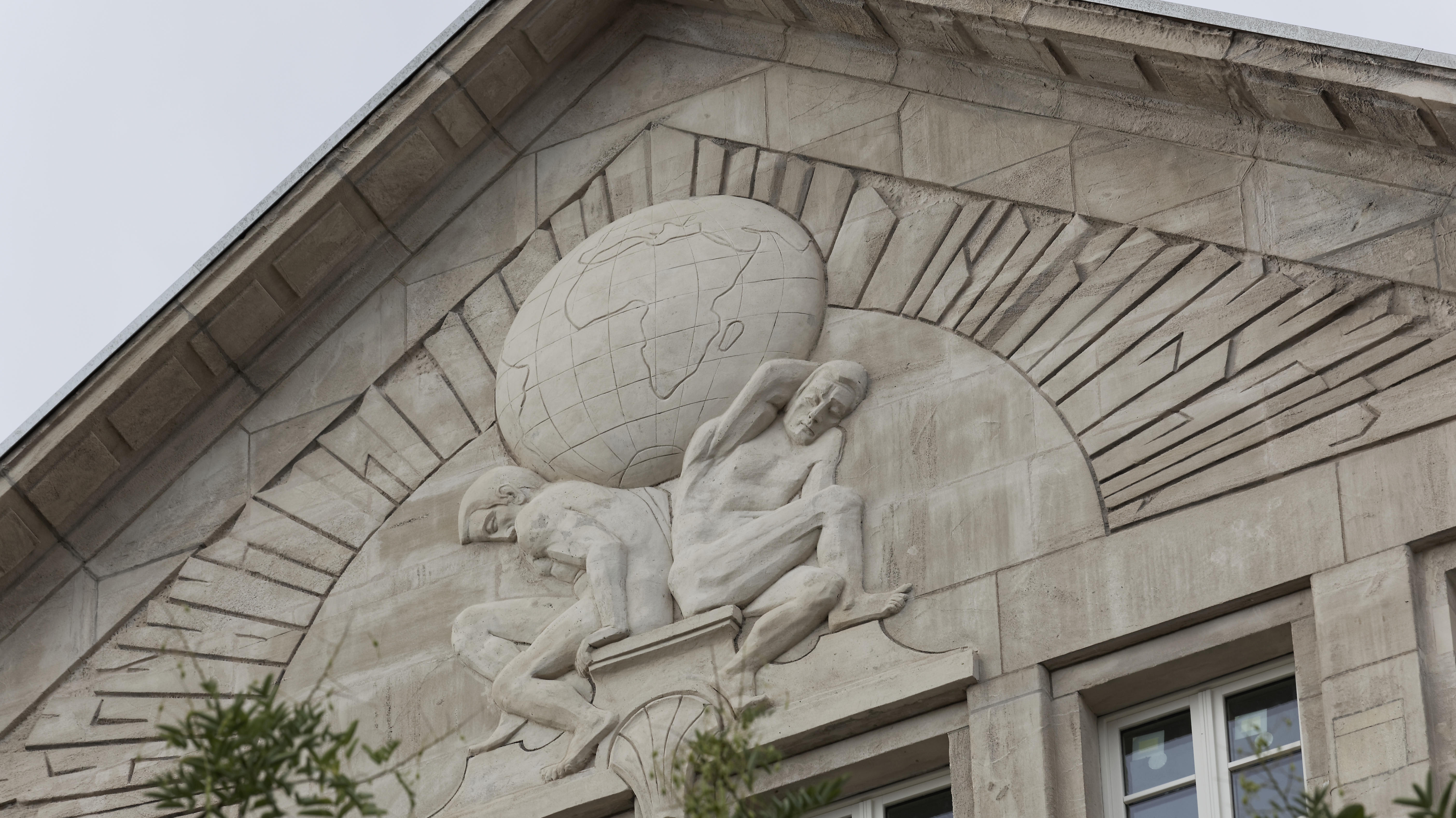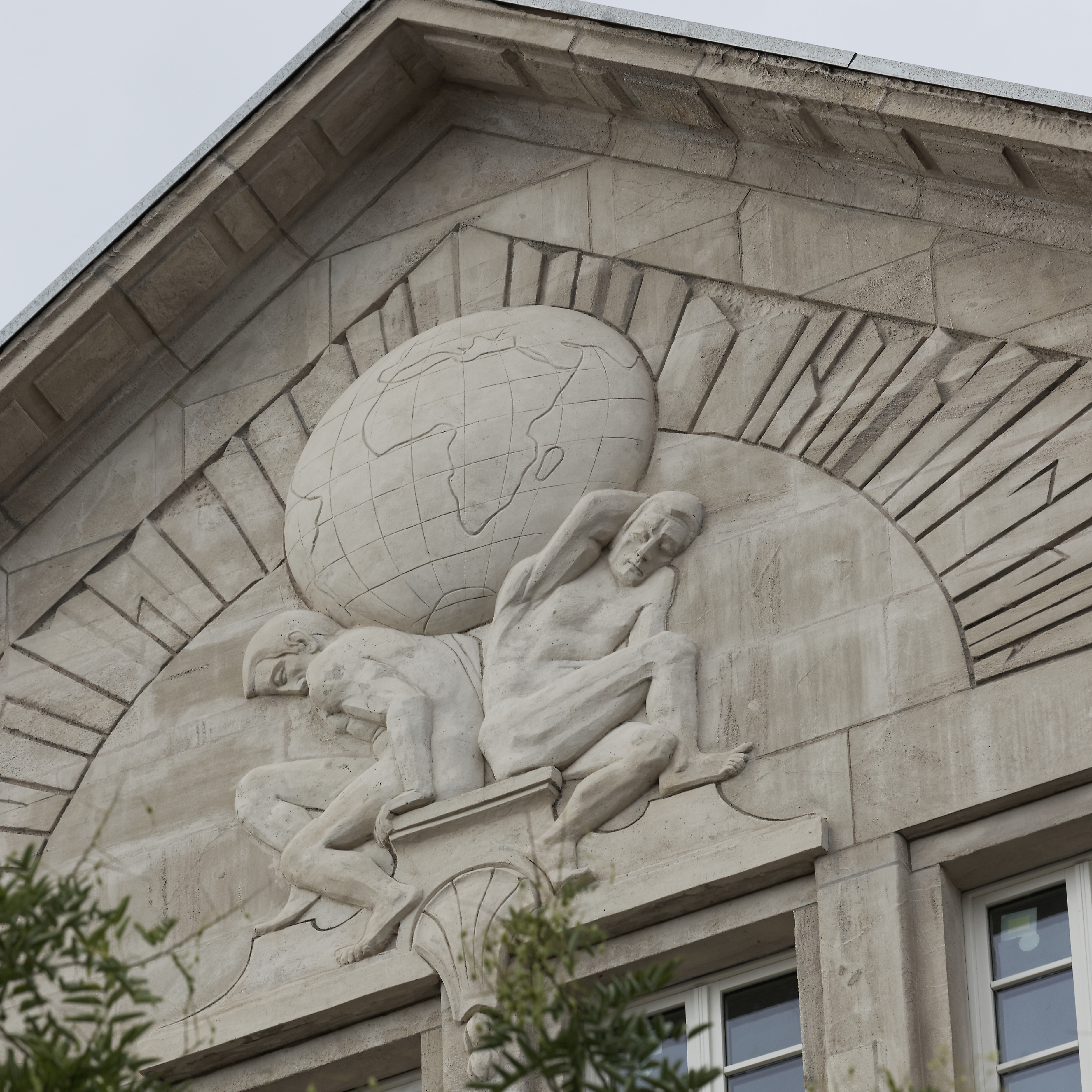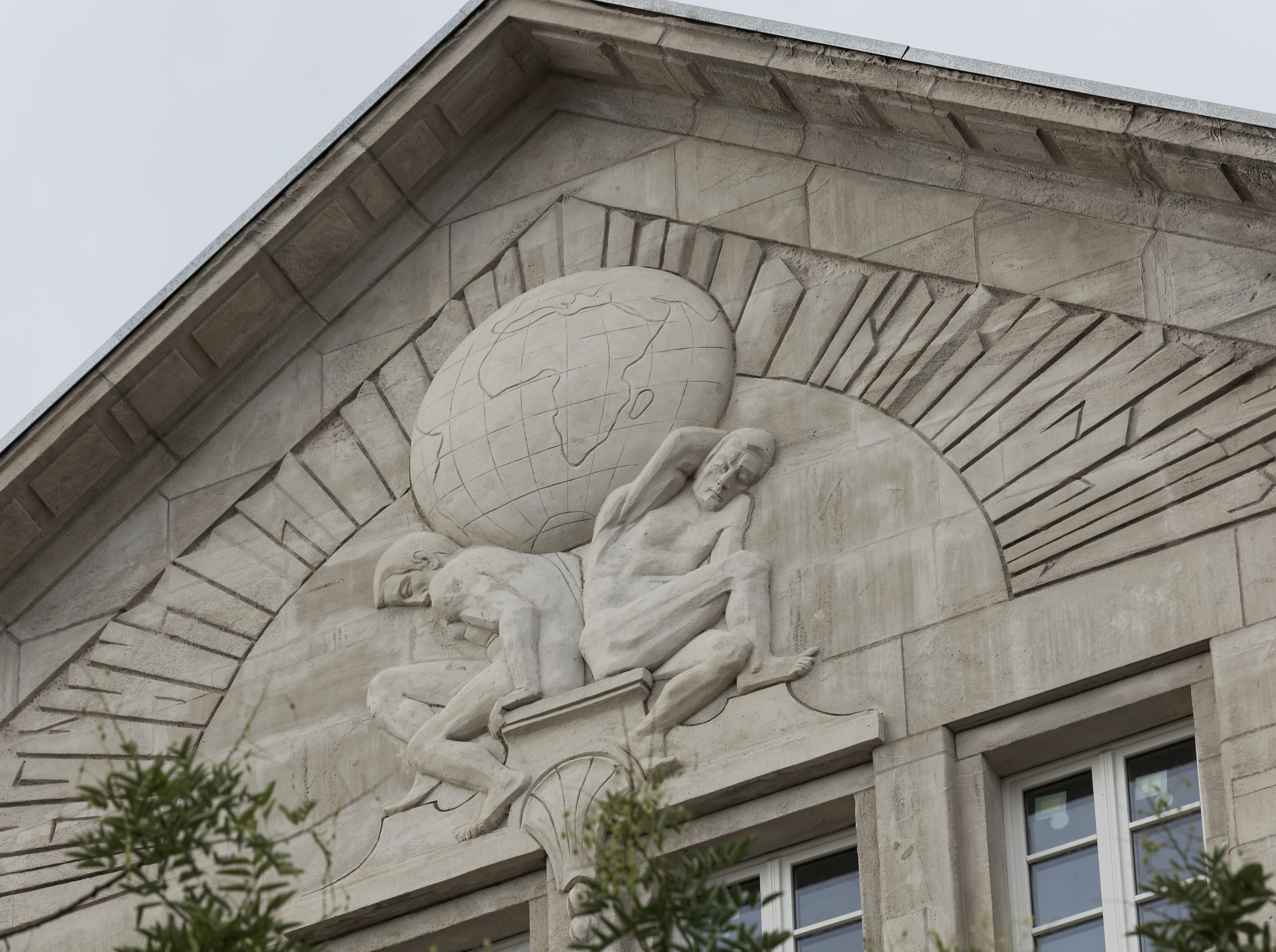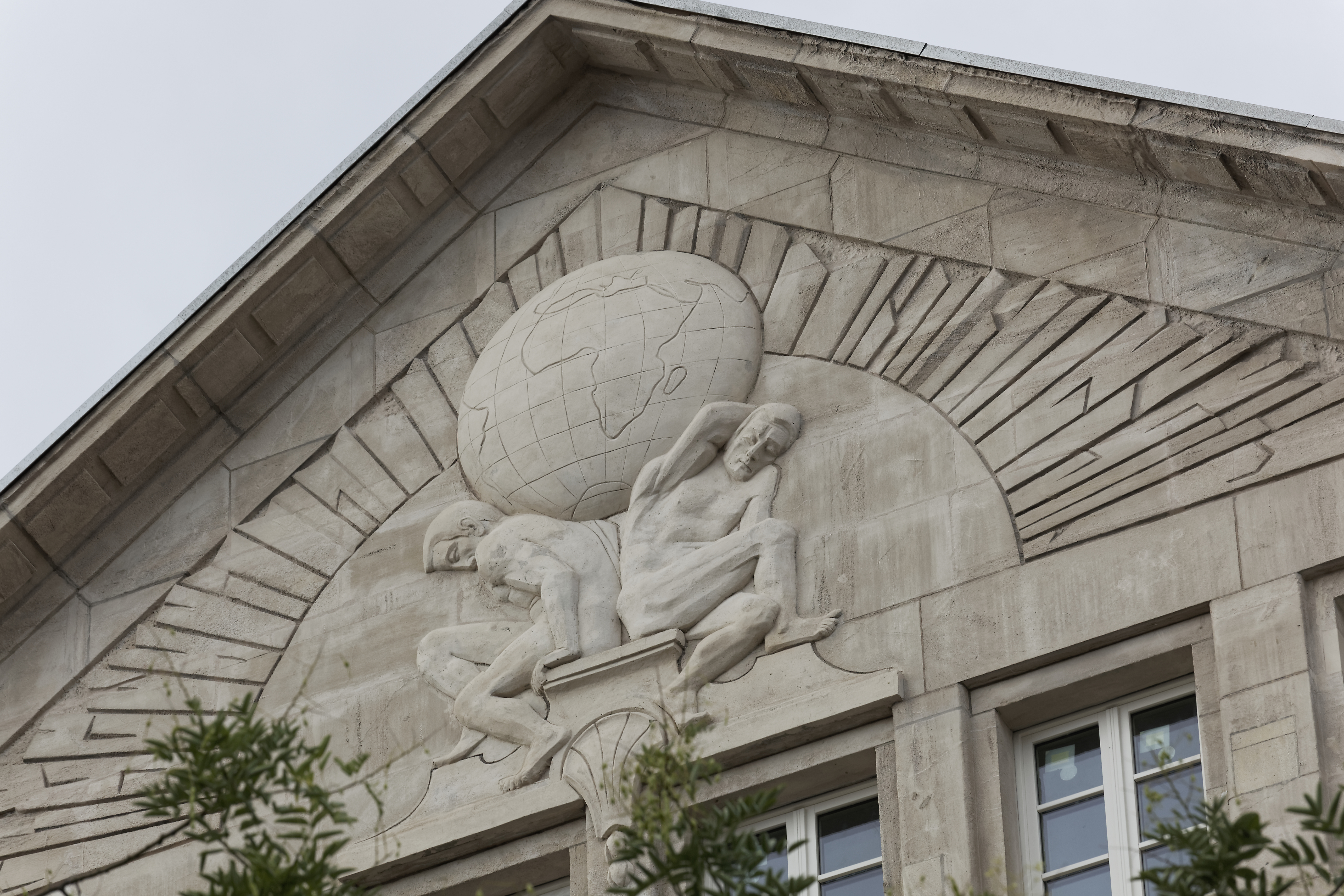 Tympan restauré d'une façade du nouveau siège Charlemagne