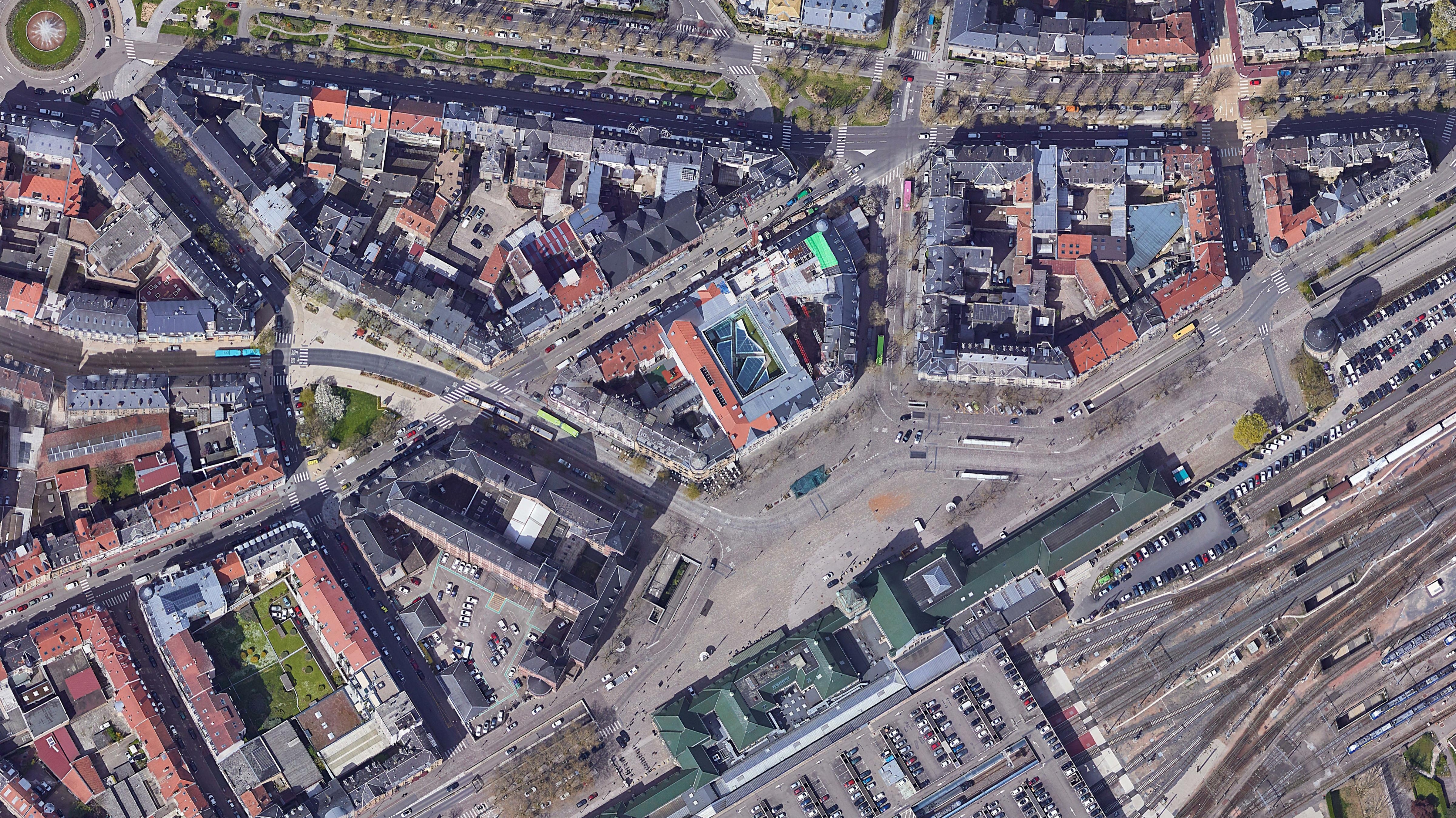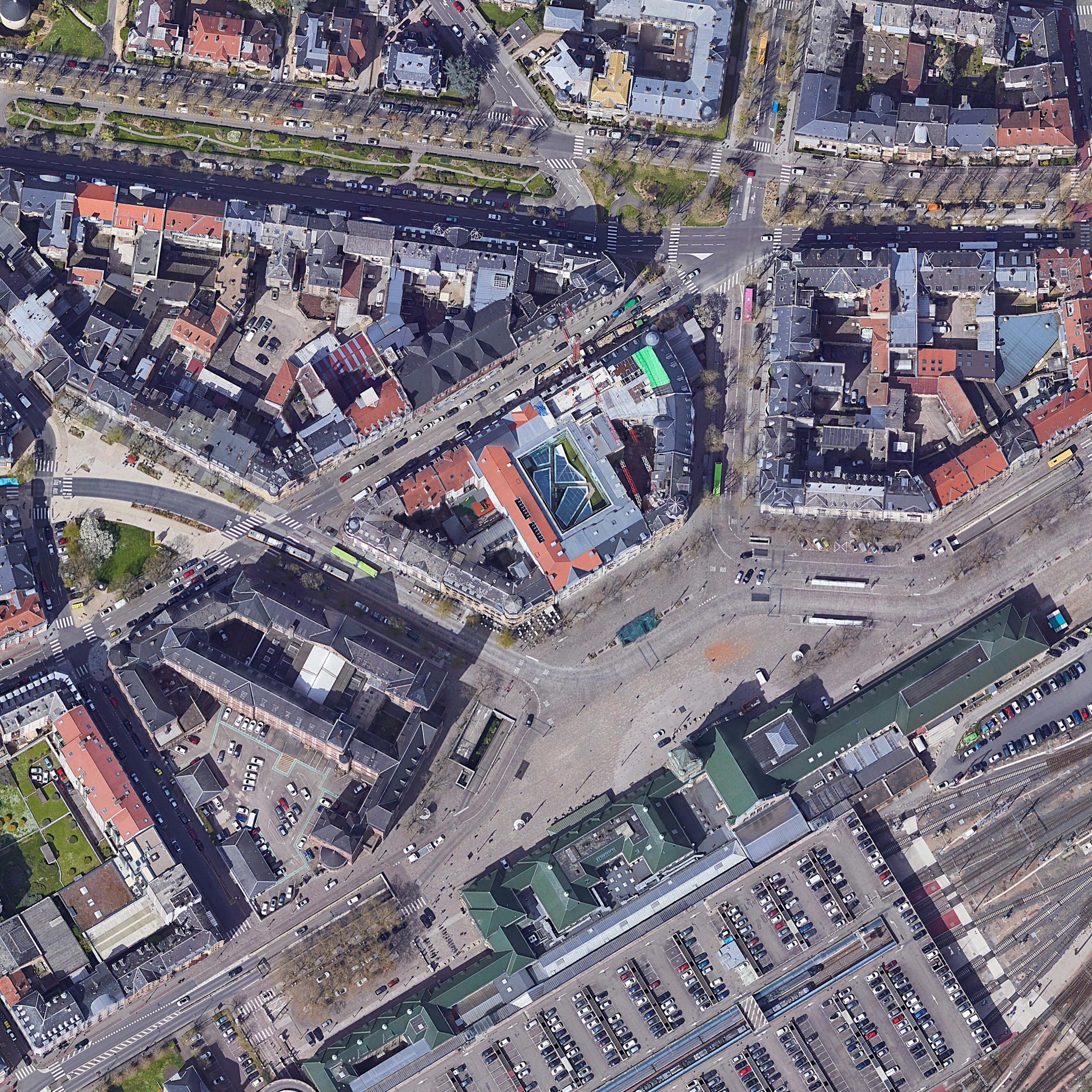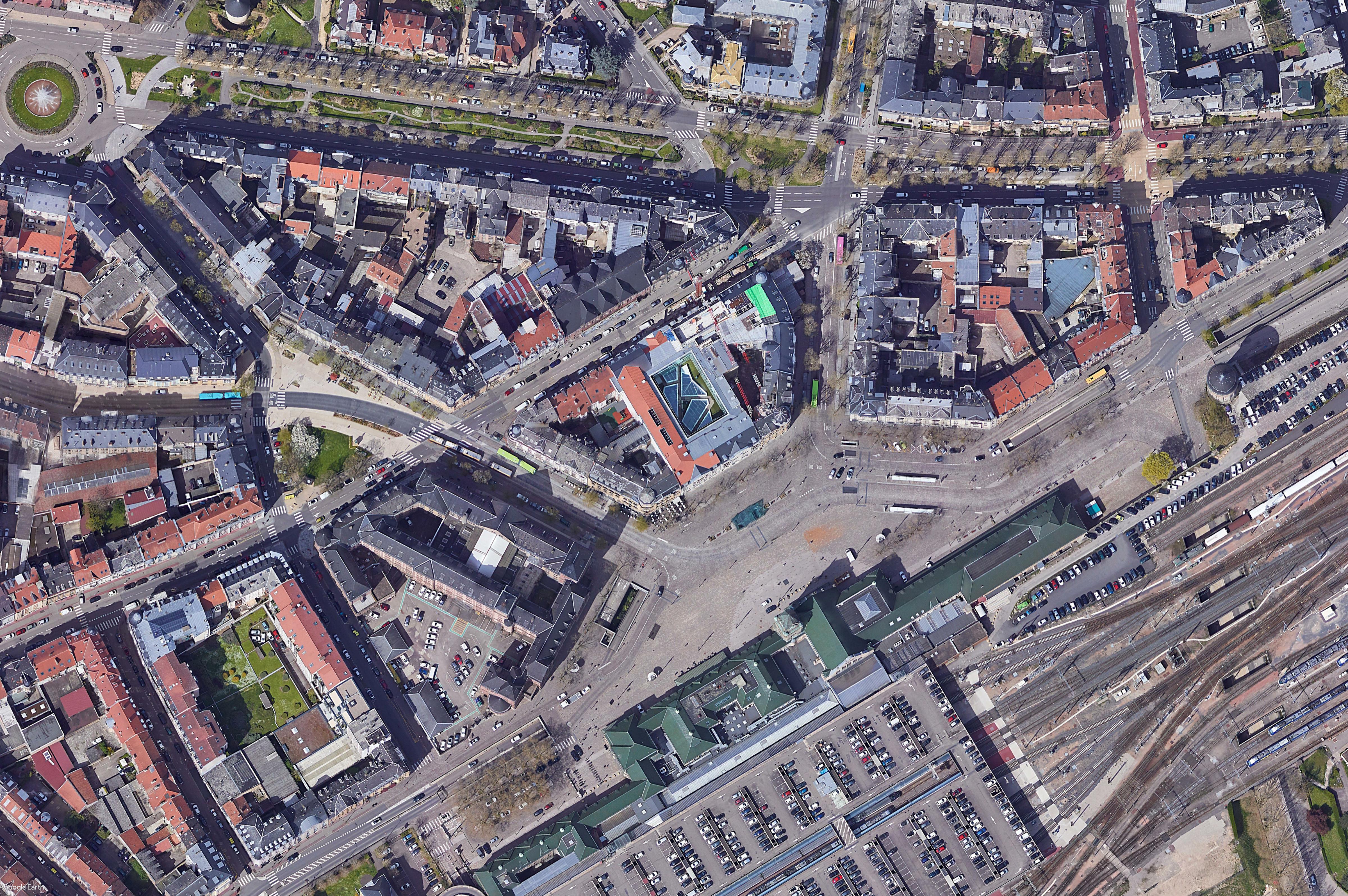 Vue aérienne de chantier du nouveau siège CHARLEMAGNE de la BPALC