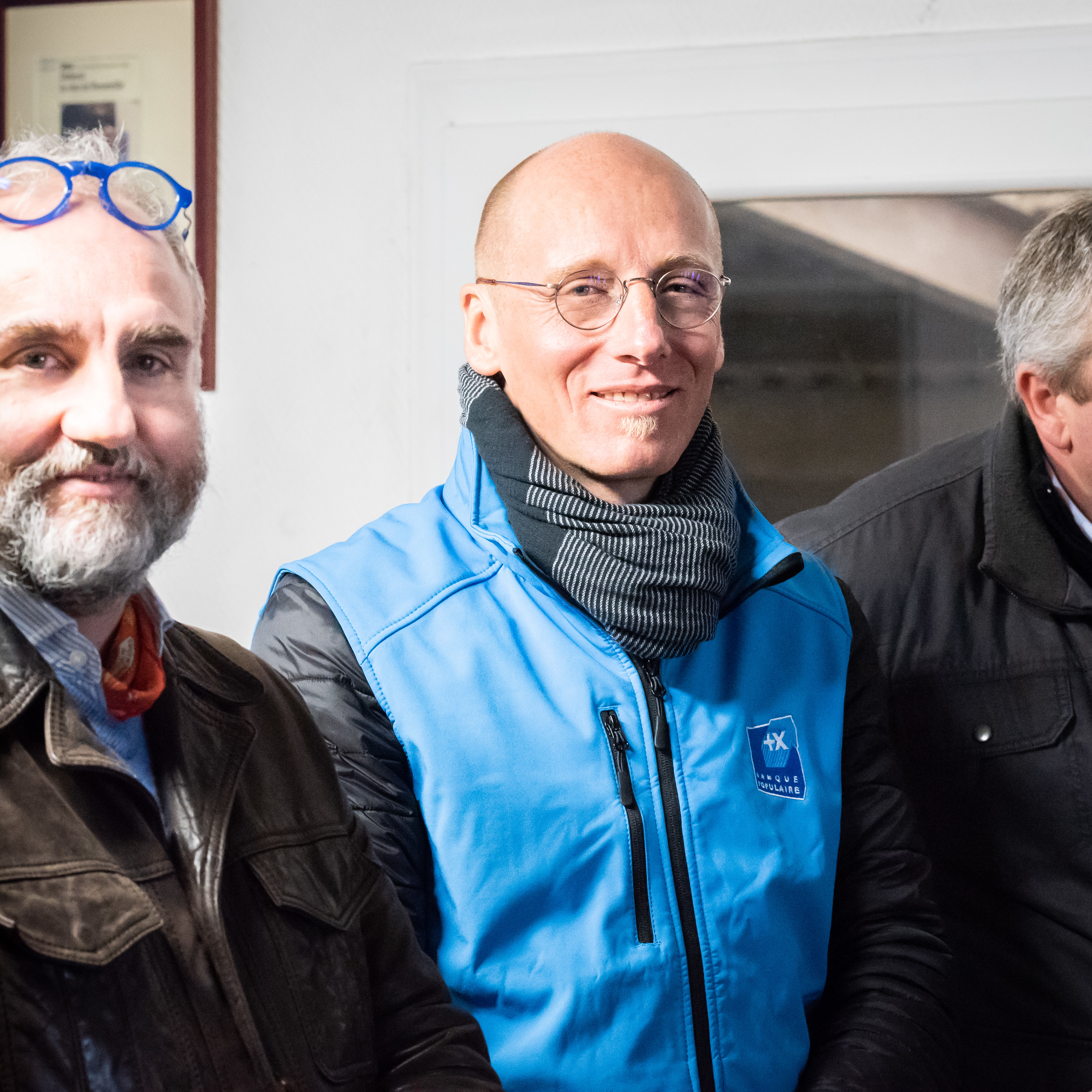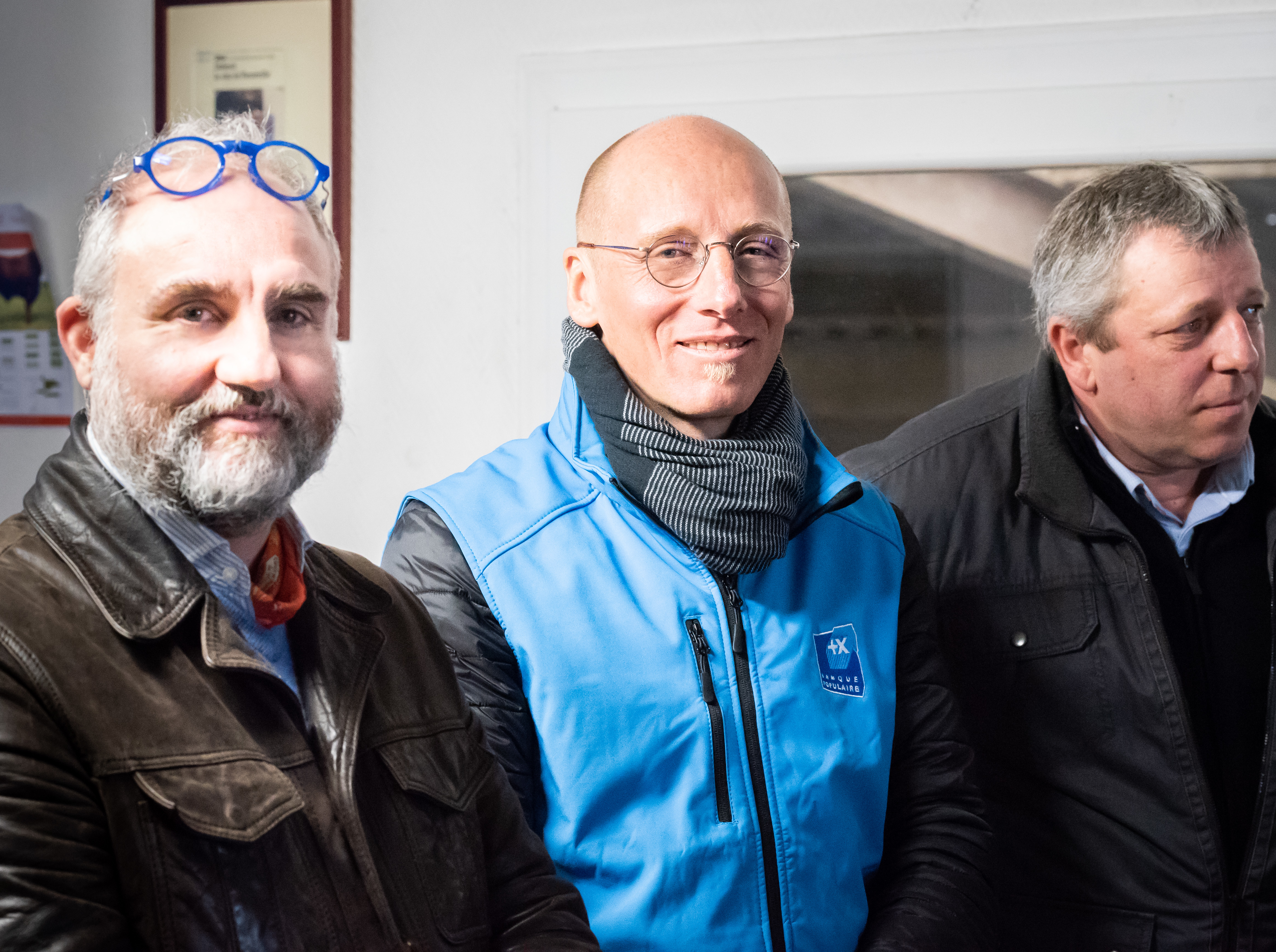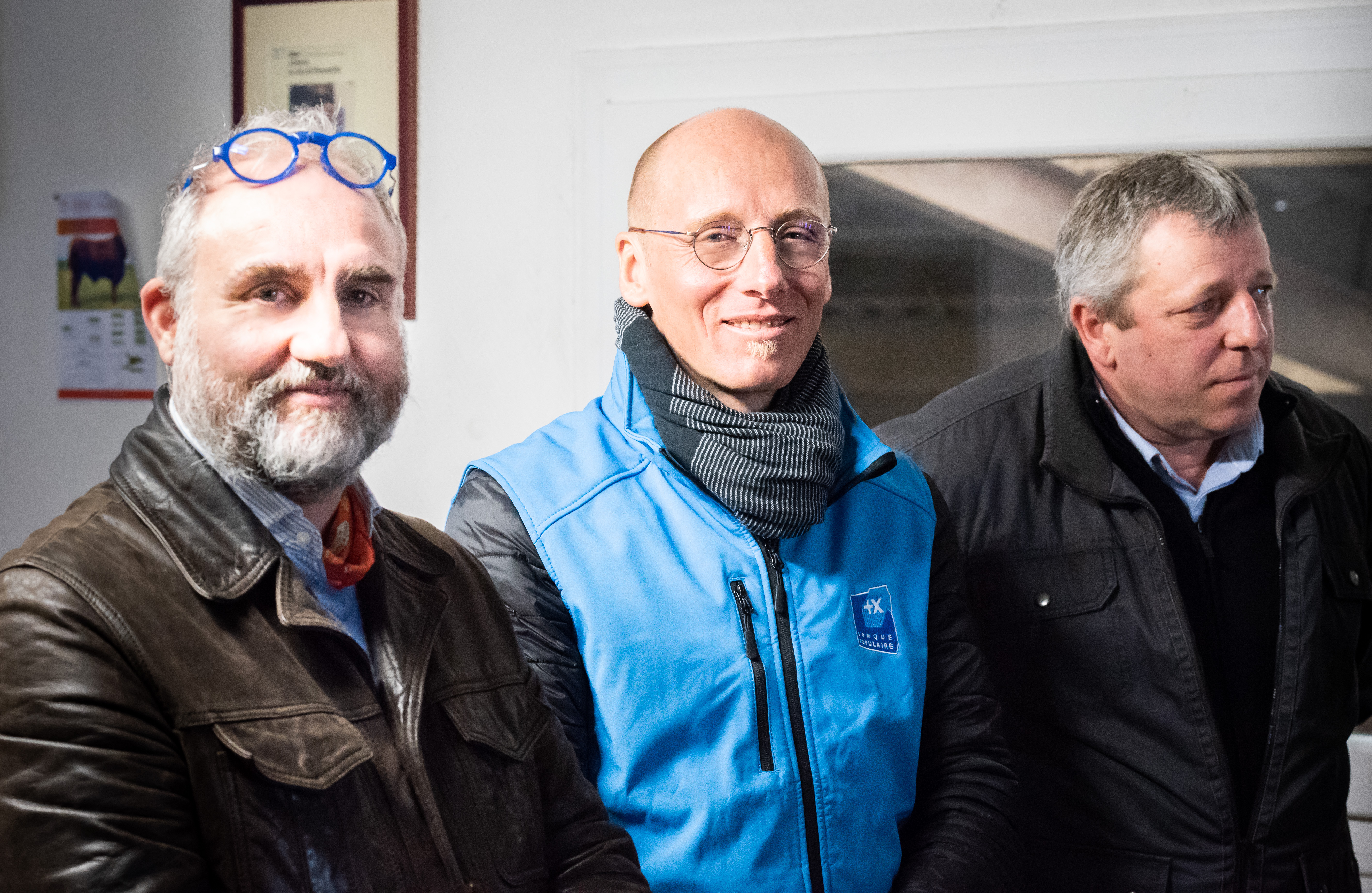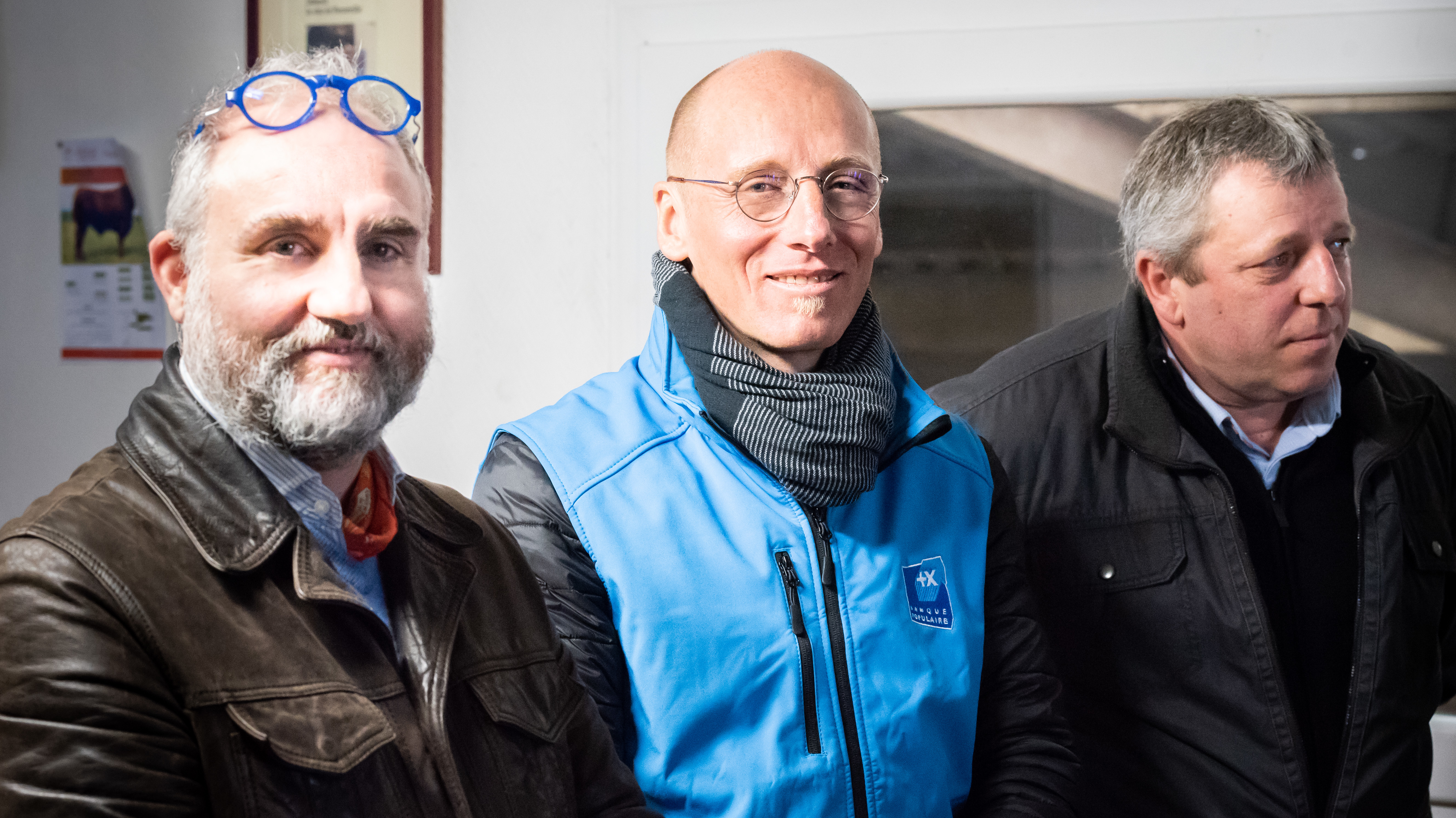 Yves-Pierre LE BOURDONNEC, Parrain d'O'STABI NEXT, Laurent LEROY, Responsable du Marché Agri-Viti de la BPALC et Laurent ROUYER, Président de BOVINEXT.